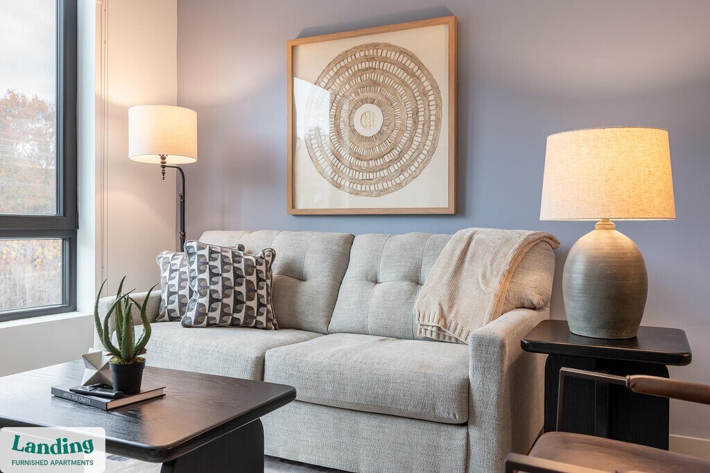 Landing offers flexible lease terms from weeks to months. Please always visit our website or contact us for the latest pricing & availability. Stay longer, save more: 6-Month Minimum base rent: starts at $3350/mo 12-Month Minimum base rent: starts at $2932/mo Landing offers flexible leases across a network of over 35,000 fully-furnished apartments throughout 375+ cities so you can rent on your terms, practically anywhere, and avoid the hassle of paying deposits or application fees. Visit to learn about all the benefits of a Landing membership, see our competitive up-to-date pricing, explore available apartments, take virtual tours, and make reservations online without jumping through traditional rental hoops. Landing's apartments at The Beck are designed for comfortable, easy living, with the ability to stay as long as you like. Experience living with Landing Every apartment is outfitted with all the modern essentials including: custom-designed furnishings, a fully-equipped kitchen with deluxe stainless steel appliances, a gourmet coffee maker, premium linens, Smart TVs, and incredibly fast, reliable internet for working from home. When you live with Landing, you'll enjoy a hassle-free experience with the added benefit of 24/7 access to our dedicated member experience team. Some of the nitty-gritty: a background check and proof of income are required; we're completely smoke-free; bundled utility packages and pricing vary based on length of stay; pet-friendly options available; listed price reflects a 12-month minimum stay.