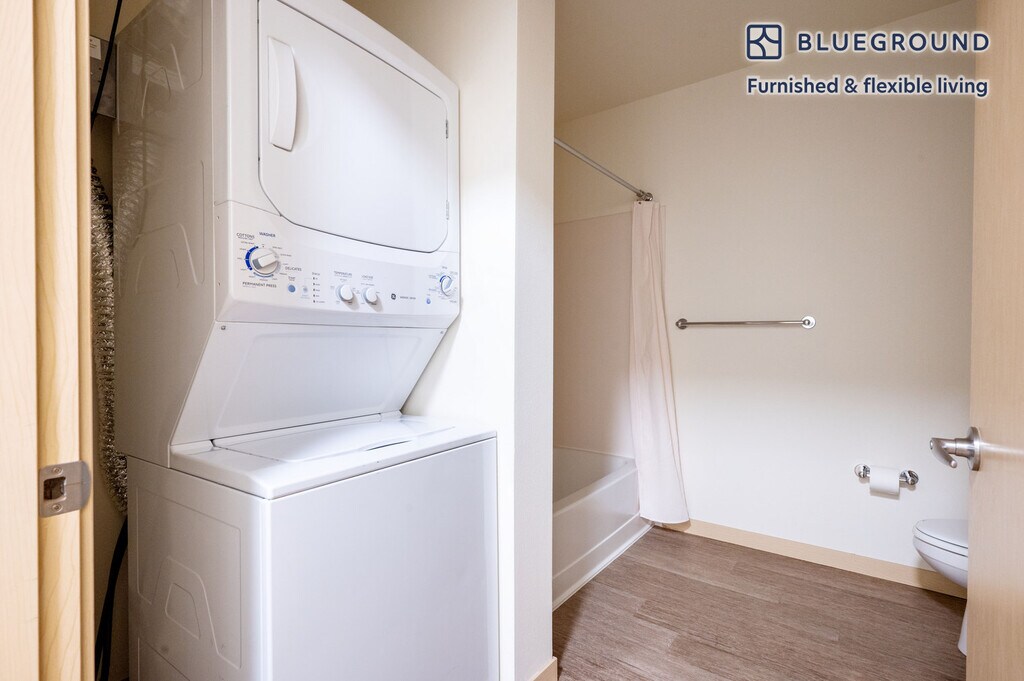 Discover the best of Seattle, with this one bedroom apartment in Northlake with views over the city. It’ll be easy to simply show up and start living in this stylishly furnished apartment with its fully equipped kitchen, stylish living room, and our dedicated, on-the-ground support. (ID #SEA565) The advertised rate of $2,500/month is the lowest available price, based on a 1 month(s) and 17 day(s) stay with a move-in date of March 8, 2026. If you’re looking for a 1-year stay, the rate is $3,240/month. Rates vary depending on the duration of stay, season, and other parameters. For exact pricing and additional pricing components, please visit our website and enter your desired move-in and move-out dates. The rate is applicable when billed upfront; it can be higher if billed in multiple payments. Brokers are welcome to reach out. Were you looking for an unfurnished lease? Try Blueground instead and upgrade from unfurnished to furnished living: - Furnished at rates comparable to unfurnished - No setup or furniture costs - save thousands - Move-in ready - save time, just bring your suitcase Designed with you in mind Thoughtfully designed with bespoke finishes, modern furnishings, and a fully equipped kitchen, you’ll enjoy that “I’m home” feeling with this Blueground apartment. Whether you’re lounging in your sophisticated living room streaming the latest and greatest entertainment on the smart TV or premium wireless speaker, or getting some well-earned rest on the superior quality mattress with fully stocked linens, you’ll fall in love with everything this Northlake apartment has to offer. This apartment also offers in-apartment laundry. Sleeping arrangements King Bed, 70.8in/180cm Amenities Building amenities unique to this one bedroom apartment include an on-site: - Dryer - Elevator - Washing machine - Lounge - Parking - Pets allowed - Rooftop BBQ Arrival and ongoing support The entire apartment is yours to enjoy! Throughout your stay, you’ll have access to our Client Experience team through the Blueground App. You can schedule additional cleanings, submit maintenance requests, and view our neighborhood recommendations with just a few taps. We’ll share all details upon confirmation of your stay. Other things to note Building amenities may have an extra cost. This Blueground apartment has flexible lease options, allowing you to book it for one month, a year, or more. Pets are welcome, though weight limits and breed restrictions apply and may incur fees. Parking is offered based on availability and is subject to a fee. We take great pride in ensuring every photo displayed is shot in our own units with our actual furnishings. That said, we regularly refresh our decor and furniture arrangement, which may differ from what’s pictured. [SI]