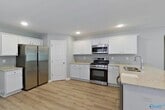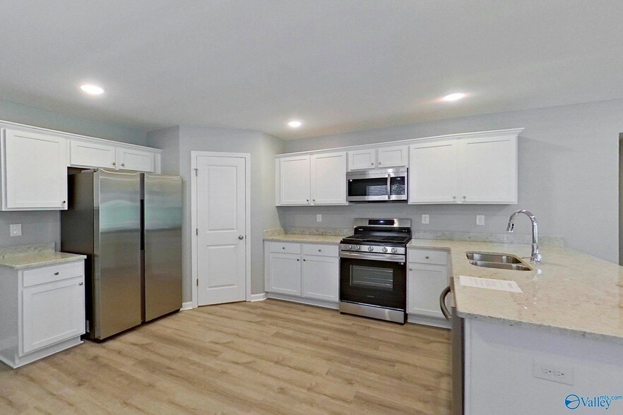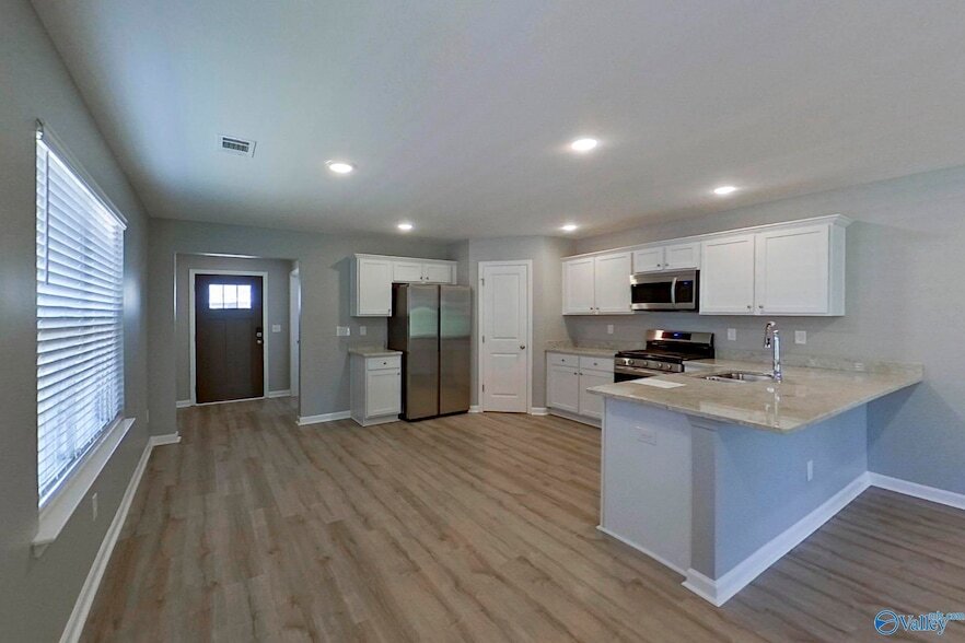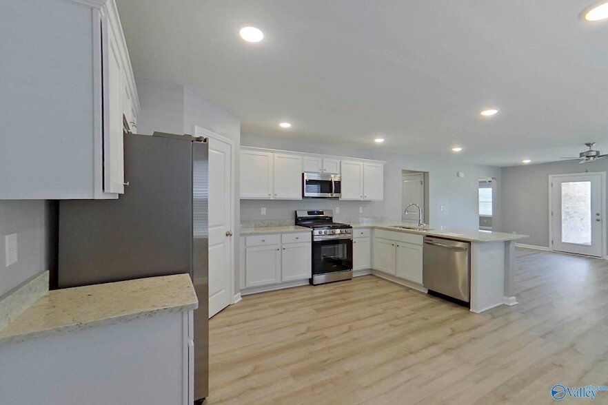 Featuring an open floor plan, this 4-bedroom, 2-bath residence offers modern touches like granite countertops, LVP flooring (no carpet!), and recessed lighting. The kitchen includes a gas range, and the home has a gas tankless water heater for efficiency. Natural light fills the space, and outside, enjoy a covered porch, freshly sodded yard, and fully brick exterior. Additional monthly fees include a $29.99 Smart Home Fee, $9.99 Utility Management Fee, and pet fees if applicable. This move-in ready home has it all!