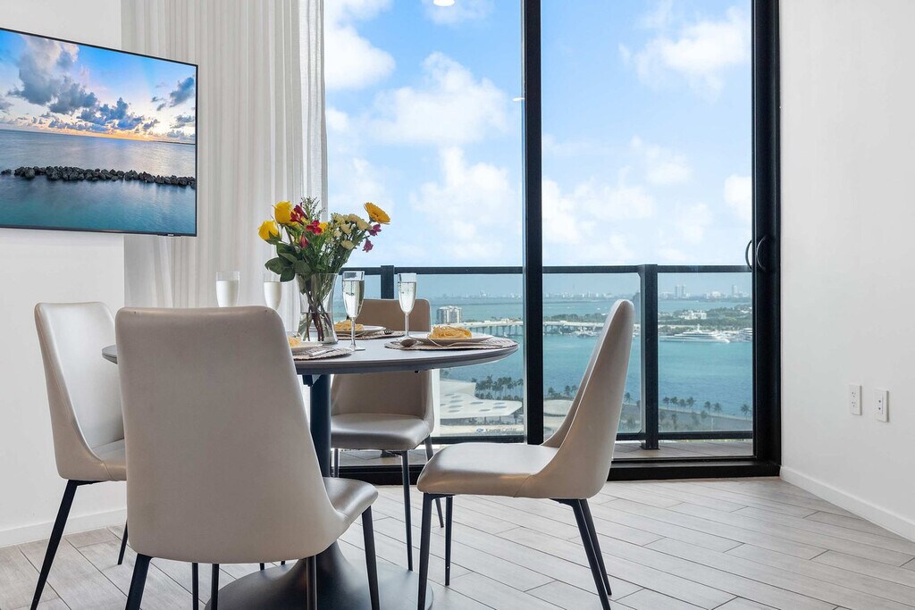 The advertised rate of $12,761/month is the lowest available price, based on a 30 day(s) stay with a move-in date of May 11, 2026. Rates vary depending on the duration of stay, season, and other parameters. For exact pricing and additional pricing components, please visit our website and enter your desired move-in and move-out dates. The rate is applicable when billed upfront; it can be higher if billed in multiple payments. Feel at home in this bright, modern 3-bedroom apartment at The Elser, a resort-style tower in Downtown Miami. This apartment offers 1500 sq ft /132.8 m² of open, well-designed space to relax and enjoy. This apartment features a fully equipped kitchen, a living room, a washer and dryer in unit, and fast Wi-Fi. Enjoy breathtaking views from the spacious balcony. Valet parking is available for $78.5/night with in and out privileges. Self-parking across the street is available upon request for $45/night. This apartment is pet-friendly for a fee of $150 plus tax, and a pack and play and high chair are available upon request. You’re in one of the most walkable pockets of Miami, where you can step outside and actually be somewhere in minutes. Kaseya Center is across the street, and Bayfront Park and the marina are a quick stroll away. Bayside Marketplace brings live music, casual bites and boat tours, and you can take the free Metromover nearby to explore Brickell. For beach days or exploring Wynwood or Midtown, it’s a quick ride. Smoking, vaping, marijuana, or illegal drug use is strictly prohibited inside the unit and building. Evidence of violation may result in a minimum $500 remediation fee, plus any additional cleaning or damage costs. Parties, events, gatherings, or excessive noise are strictly prohibited and any disturbance may result in immediate eviction without refund. Hair dyeing, bleaching, or use of staining substances is prohibited inside the unit, and any resulting damage will be charged to the guest. Dogs and cats only are permitted with prior written approval, with a maximum of one pet per unit and a maximum weight of 75 lbs. Pets must be well-behaved, house-trained, non-aggressive, and leashed in common areas. Pets may not be left unattended unless created and are not permitted on furniture or bedding. Guests are responsible for pet waste, damages, odors, and disturbances. [SI]