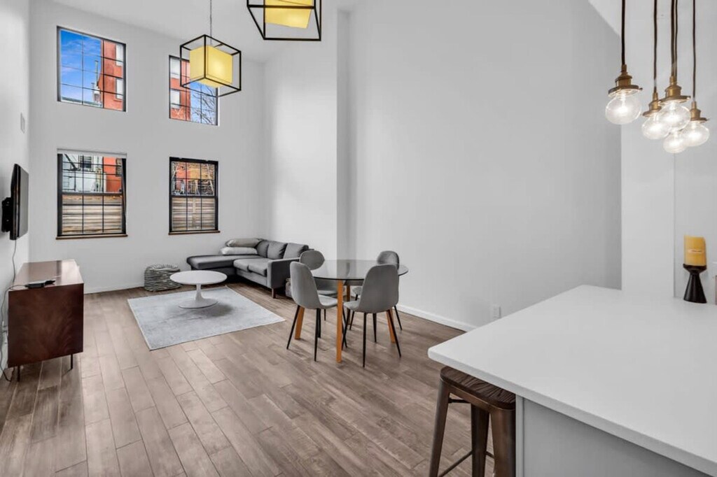 Step into urban luxury with this 2-bedroom, 1-bathroom loft boasting soaring 14 ft ceilings. Enjoy ample natural light, elegant wood flooring, and a chef's kitchen in this 950 sq. ft. space in Carroll Gardens. Step into this urban abode and revel in its spaciousness under soaring 14 ft ceilings. Bask in the abundance of natural light streaming through large windows in this sleek apartment. With elegant wood flooring, the convenience of a washer and dryer, and the functionality of a chef's kitchen boasting granite countertops, every detail is meticulously crafted for modern living. Indulge in the luxury of a generous bathroom complete with a soaking tub. This refined space seamlessly combines industrial charm with sophisticated accents, enhanced by a soothing neutral color scheme. Carroll Gardens, a charming neighborhood in Brooklyn, offers tree-lined streets, historic brownstones, and a vibrant community atmosphere. Known for its trendy boutiques, cozy cafes, and diverse dining options, it's the perfect blend of residential tranquility and urban energy. With beautiful parks and easy access to transportation, Carroll Gardens embodies the best of Brooklyn living. [SI]