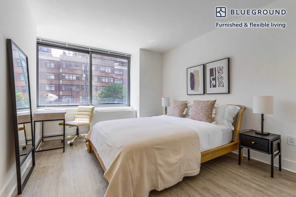 Show up and start living from day one in New York with this roomy one bedroom Blueground apartment. You’ll love coming home to this thoughtfully furnished, beautifully designed, and fully equipped Long Island City home with stunning views over the river. (ID #NYC1788) The advertised rate of $5,020/month is the lowest available price, based on a 12 month(s) stay with a move-in date of April 1, 2026. Rates vary depending on the duration of stay, season, and other parameters. For exact pricing and additional pricing components, please visit our website and enter your desired move-in and move-out dates. The rate is applicable when billed upfront; it can be higher if billed in multiple payments. Brokers are welcome to reach out. Were you looking for an unfurnished lease? Try Blueground instead and upgrade from unfurnished to furnished living: - Furnished at rates comparable to unfurnished - No setup or furniture costs - save thousands - Move-in ready - save time, just bring your suitcase Designed with you in mind Gorgeous furniture, fully equipped kitchen, smart TV, and a premium wireless speaker are just a few of the amenities you’ll find inside this one bedroom apartment. Ideally located in New York, you’ll find a lot to love outside as well. When you’re ready to relax, you’ll be happy to discover every Blueground bedroom comes with superior quality mattresses, fully stocked linens, and cozy towels. We handle everything so you can simply show up and start living. This apartment also offers in-apartment laundry. Sleeping arrangements Queen Bed, 63in/160cm Amenities Building amenities unique to this one bedroom apartment include an on-site: - Doorman - Dryer - Elevator - Swimming pool - Washing machine - Lounge - Pets allowed - Playroom Arrival and ongoing support The entire apartment is yours to enjoy! Throughout your stay, you’ll have access to our Client Experience team through the Blueground App. You can schedule additional cleanings, submit maintenance requests, and view our neighborhood recommendations with just a few taps. We’ll share all details upon confirmation of your stay. Ideally Located This furnished apartment is located in Long Island City, a neighborhood with amazing East River views. Nowadays, the area has become one of the best downtown Manhattan alternatives. Here, locals can enjoy a mix of activities from shopping on Jackson Avenue to indoor arts entertainment at MoMA PS1. Long Island City is also filled with modern public green spaces ideal for a stroll or jog. Grand Central Station is only a 20-minute subway ride away. Other things to note Building amenities may have an extra cost. This Blueground apartment has flexible lease options, allowing you to book it for one month, a year, or more. Pets are welcome, though weight limits and breed restrictions apply and may incur fees. Brokes CYOF. We take great pride in ensuring every photo displayed is shot in our own units with our actual furnishings. That said, we regularly refresh our decor and furniture arrangement, which may differ from what’s pictured. [SI]