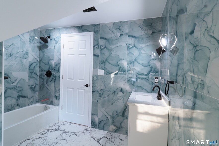 Beautifully renovated 2-bedroom, with an extra small room,1-bath apartment located on the third floor of a fully renovated multifamily property in Waterbury's North End. This unit has been completely redone with top-quality materials throughout. Features include brand-new hardwood floors, recessed lighting, and a modern kitchen with new cabinetry, stainless steel appliances, and high-end tile flooring. The bathroom is fully updated with premium tile finishes. One off-street parking space included. Washer and dryer hookups available in the basement. Conveniently located near shopping, dining, and major routes. The entire property has been fully renovated, including the roof, siding, and windows. A must-see rental offering modern finishes, quality craftsmanship, and comfort.