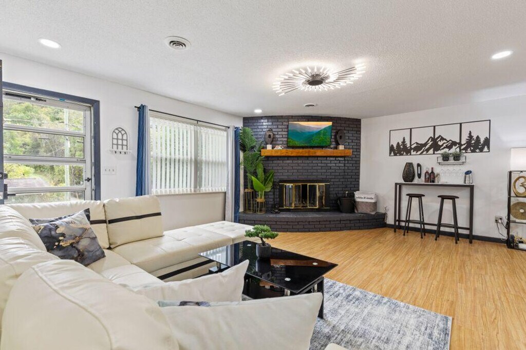 Experience the charm of Sevierville with this cozy mountain escape, just minutes from the heart of the city. This beautiful home offers the perfect blend of comfort and convenience, making it an ideal base for both relaxing getaways and adventure-filled trips. Unwind in your inviting retreat after a day of exploration. Enjoy amenities such as A/C, a fireplace, internet, Wi-Fi, a smart TV, a fully equipped kitchen, a hot tub, a patio, and a sunroom. A complimentary bottle of wine is provided by your host to enhance your stay. Free parking is available for up to 3 cars. Dogs are welcome with a 40lb weight limit and a pet fee of $100 per stay. Enjoy easy access to some of the area's most popular attractions, including Dollywood and The Island in Pigeon Forge, just 7 miles away. For nature enthusiasts, a scenic 14-mile drive will take you to downtown Gatlinburg and the Great Smoky Mountains National Park, where breathtaking trails, waterfalls, and wildlife await. At least one guest must be 21 years or older, with proof of age required at check-in. A state identification card or driver's license copy will be requested upon booking. For same-day late check-ins, host approval is needed before booking. This is a non-smoking house, and any violation of the smoking policy will incur a $400 fine plus cleaning costs to remove smoke odors. Guests are financially responsible for any property damage during the rental period. No firearms, fireworks, or ATVs are allowed. The house is located in the mountains of East Tennessee, where wildlife such as deer, bears, raccoons, snakes, and bugs may be encountered. Admire wildlife from a safe distance and do not feed them to preserve their natural state. [SI]