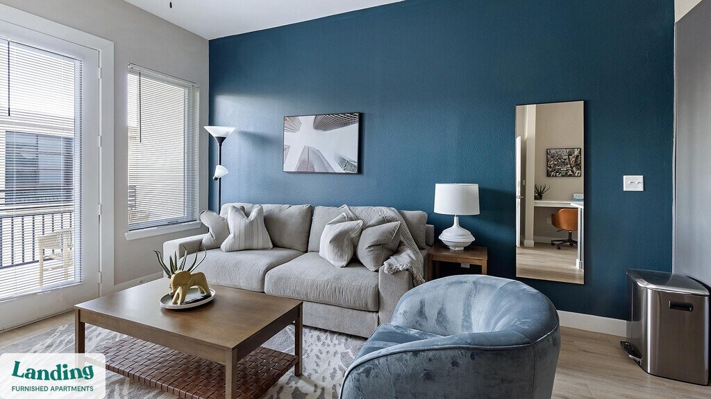 Landing offers flexible lease terms from weeks to months. Please always visit our website or contact us for the latest pricing & availability. Stay longer, save more: 6-Month Minimum base rent: starts at $2160/mo 12-Month Minimum base rent: starts at $1809/mo Landing offers flexible leases across a network of over 35,000 fully-furnished apartments throughout 375+ cities so you can rent on your terms, practically anywhere, and avoid the hassle of paying deposits or application fees. Visit to learn about all the benefits of a Landing membership, see our competitive up-to-date pricing, explore available apartments, take virtual tours, and make reservations online without jumping through traditional rental hoops. Landing's apartments at Skyview at Crawford are designed for comfortable, easy living, with the ability to stay as long as you like. Experience living with Landing Every apartment is outfitted with all the modern essentials including: custom-designed furnishings, a fully-equipped kitchen with deluxe stainless steel appliances, a gourmet coffee maker, premium linens, Smart TVs, and incredibly fast, reliable internet for working from home. When you live with Landing, you'll enjoy a hassle-free experience with the added benefit of 24/7 access to our dedicated member experience team. Some of the nitty-gritty: a background check and proof of income are required; we're completely smoke-free; bundled utility packages and pricing vary based on length of stay; pet-friendly options available; listed price reflects a 12-month minimum stay.