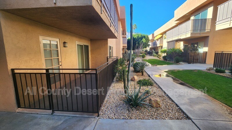 Welcome to Americana Gardens! This inviting ground floor condo features a freshly updated living space. The spacious open-concept living area features sleek grey wood-look flooring, ceiling fan, and large sliding glass doors that flood the room with natural light. The adjacent modern kitchen is stylishly appointed with rich dark wood cabinetry, a striking multi-colored mosaic tile backsplash, and stone-look countertops with a convenient breakfast bar peninsula. It is equipped with a stainless steel refrigerator and contrasting black appliances, including a gas range, dishwasher, and a modern black sink with a high-arc faucet. The bathroom is updated with a dark wood vanity, contemporary lighting, and a bathtub/shower combination featuring custom vertical tile work with a decorative mosaic accent strip. A dedicated laundry area includes a side-by-side washer and dryer for your convenience. Step out through the sliding glass doors in the living room to enjoy your expansive private covered patio. The exterior features manicured desert landscaping with agave and cactus along the walkways, leading to a shimmering community swimming pool and a soothing hot tub spa, offering the perfect space for relaxation. HOA Fees, Gas and Water are all included in the rent. Resident to pay utilities. All applicants must pass a comprehensive background screening including income verification and landlord references. Renter's insurance is required. All applicants must have the following: monthly income of 2.5 times the monthly rent, a good rental history and an acceptable credit score. HOA fees included in the rent. Tenant to pay all utilities. If you see this home advertised online for less than the rental amount quoted here, the ad is a SCAM. We are the only authorized agent for this property. Please email us a link to any bogus or fraudulent ads so we can report it to the appropriate authorities. Please do NOT send money to anyone who offers keys in exchange for a deposit check - especially if they are out of state. When in doubt, please feel free to contact us.