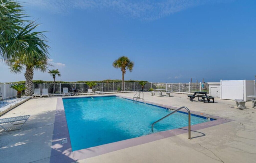 Discover your slice of paradise and feel at home in this cozy, coastal condo in Gulf Shores, just steps from the beach. This 2-bedroom, 2-bath getaway is the perfect retreat for families, couples, or friends. Inside, the condo boasts a welcoming ambiance with a spacious living area and a well-equipped kitchen featuring modern appliances, including a refrigerator, stove, oven, microwave, coffee maker, blender, toaster, and all dishes and silverware. Free Wi-Fi is offered in this unit and in public areas of the resort. Parking passes are available for a maximum of 2 cars. Paid laundry rooms are available, one on each floor of buildings 1, 2, and 3, and two on the first floor of building 4. Soft white sands and warm Gulf waves are steps away. Enjoy fresh food at the Sassy Bass Grill. Gulf Shores' shopping and dining are a 15-mile drive away, and Fort Morgan's beaches and boardwalks are nine miles westward. You can also access Dauphin Island via the Mobile Bay Ferry. For your safety and protection, some properties have cameras installed outside, but surveillance cameras are not inside any of our properties. Beach towels are not provided. For March 1st to May 1st, the minimum age requirement for check-in is 25 years old. This is a smoke-free facility, and smoking in the unit or on the balcony will incur a $250 fine plus the cleaning costs necessary to remove smoke odors. The resort does not permit pets, and any violation of this policy will incur a $200 fine. No parties or events are allowed, and violators will be charged a $500 fine. The home has a maximum occupancy of guests, and renters who exceed the occupancy limit are subject to eviction. For same-day late check-ins, you need to get approval before booking. Guests must be at least 22 years of age to make a reservation and provide a state identification card or driver's license copy upon booking. Take advantage of the community's shared amenities, including a hot tub, sauna, indoor and outdoor pools, tennis courts, and basketball courts. Other amenities include a meeting room, the Palms Room, Dome Offices, shuffleboard courts, horseshoe pits, BBQ grills, a guard gate, a media building, an enclosed roll-off trash dumpster, a beach access road, and storage rooms. [SI]