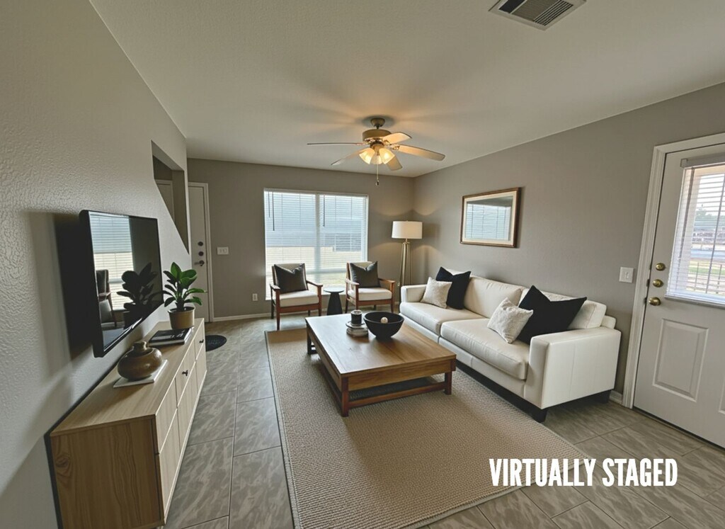 View 360 Virtual Tour: 3 bed 2 bath townhome with matching appliances, tile flooring on the first floor, and carpet upstairs. All electric with air conditioning, cable ready, and washer and dryer connections. Cats and both large and small dogs are allowed, and HUD/Section 8 is accepted. Come by our office to see this property today. Disclaimer: The furnishings or enhancements shown are AI-generated and intended for inspiration only. They may not reflect the actual scale, condition, or current features of the property.