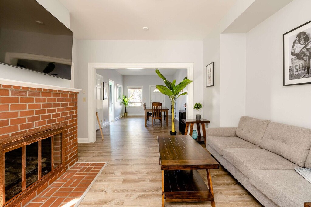 Experience the vibrant lifestyle of Portland in this private and spacious four-bedroom home, perfectly situated in the heart of the eclectic SE Division District. Known as a walker's paradise with a WalkScore® of 94/100, this home offers easy access to Portland's top-rated restaurants, bars, vintage shops, and some of the best people-watching spots around. If you're a fan of great food, craft beer, pour-over coffee, and the Portlandia vibe, you'll feel at home here. This recently remodeled home is tastefully furnished in true Portland fashion, boasting unique charm with many original features and woodwork from its over-a-century-year-old structure still intact. The cozy living room is perfect for relaxing, especially on rainy days, with a 55" LED flat-screen TV for movie nights. The fully equipped kitchen features new appliances, and the spacious dining room with a big farmhouse-style table is ideal for hosting gatherings. After a day of exploring, retreat to the super comfy queen-size beds in each of the four bedrooms. Nestled in the SE Division District, this home offers a prime location for exploring Portland's vibrant culture. Enjoy the convenience of nearby grocery stores just a few blocks away, and immerse yourself in the local scene with easy access to public transportation and walkable streets. There is a separate basement unit also rented through another platform. Quiet hours are observed between 22:00 and 8:00. [SI]
