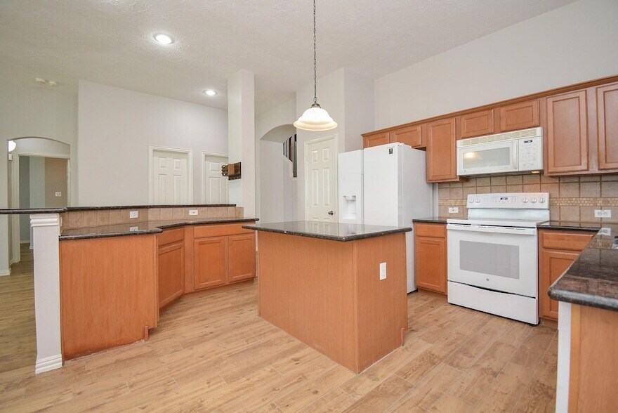 Full of upgrades throughout - wood tile flooring throughout 1st floor; hard surface flooring upstairs and on staircase. Large, open floor plan, Game Room upstairs, great Kitchen with island and breakfast bar for additional seating. Refrigerator, washer, dryer & TVs are there to use & enjoy but are not included with the lease. ***LOCATION! LOCATION! LOCATION! *** Zoned to EXCELLENT Fort Bend ISD Schools!!! No Pets.