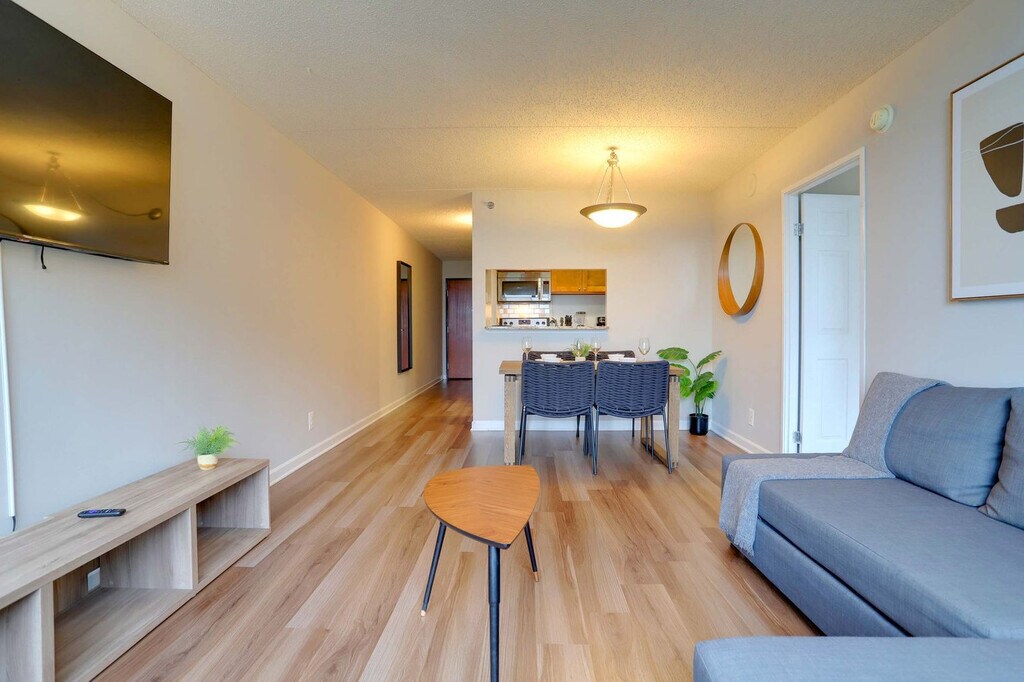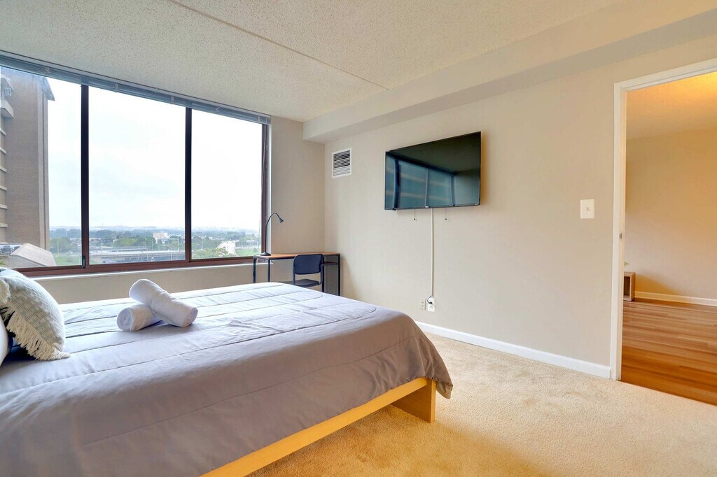 Welcome to your chic condo retreat in the vibrant heart of National Landing! Perfectly designed for comfort and style, this apartment is your ideal base for exploring Arlington and Washington, D.C. with ease. Feel at home in this bright and modern apartment. This apartment is designed for a comfortable and easy stay. It features a fully equipped kitchen with modern appliances and essentials, and an in-unit washer and dryer for convenience. Enjoy a refreshing swim in the indoor pool. A comfortable sofa bed is available, and the pool is for registered guests only and is open daily from 11 AM to 8 PM. This apartment is in the heart of National Landing (Pentagon City), a vibrant and well-connected neighborhood perfect for both business and leisure travel to the D.C. area. It is just steps from Fashion Center at Pentagon City for shopping, entertainment, and more, and only two Metro stops to the National Mall, Smithsonian Museums, and iconic D.C. landmarks. You are just a short walk from the Pentagon City & Crystal City Metro Stations, putting all of D.C.'s landmarks at your fingertips. The Reagan National Airport (DCA) is just one Metro stop away, making for a stress-free commute. You are right next to the iconic 18-mile Mount Vernon Trail, perfect for a scenic bike ride or run. A large and modern Whole Foods Market is located right across the street. Quiet hours are between 10 PM and 8 AM. Smoking inside is charged a $300 fine and partying on the property is charged a $300 fine. The building requires a brief guest screening prior to check-in, which must be completed before arrival. The building operates a centralized HVAC system in accordance with municipal regulations. Heating runs from October 13 to May 1, while air conditioning is available from May 15 to October 1. During seasonal transitions, HVAC adjustments are managed by the building association based on outdoor temperatures. All guests must be registered, and the full names and IDs of all guests who will be entering the property must be provided. Washcloths are not provided. [SI]