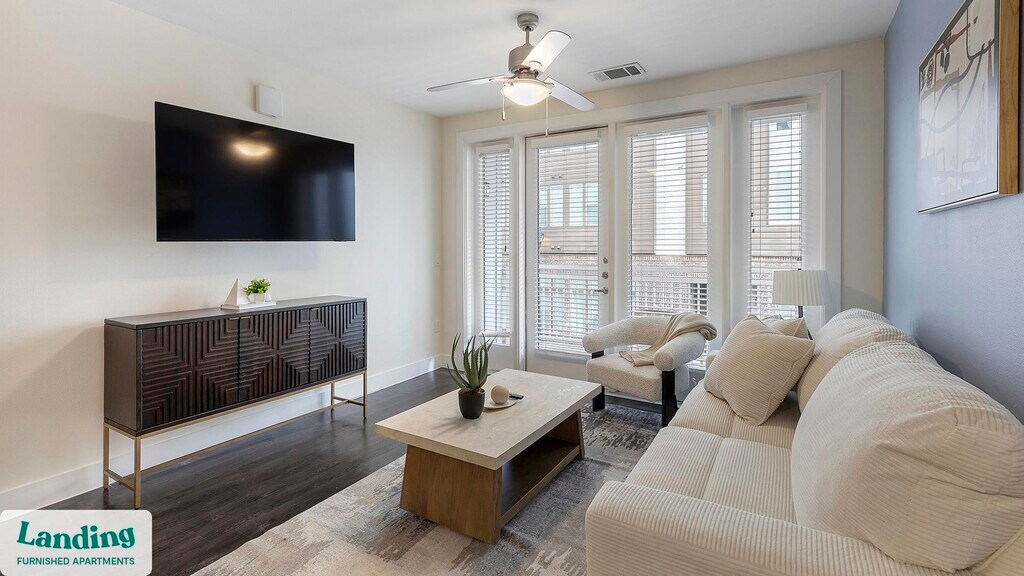 Landing offers flexible lease terms from weeks to months. Please always visit our website or contact us for the latest pricing & availability. Stay longer, save more: 6-Month Minimum base rent: starts at $2070/mo 12-Month Minimum base rent: starts at $2170/mo Landing offers flexible leases across a network of over 35,000 fully-furnished apartments throughout 375+ cities so you can rent on your terms, practically anywhere, and avoid the hassle of paying deposits or application fees. Visit to learn about all the benefits of a Landing membership, see our competitive up-to-date pricing, explore available apartments, take virtual tours, and make reservations online without jumping through traditional rental hoops. Landing's apartments at Broadway Chapter are designed for comfortable, easy living, with the ability to stay as long as you like. Experience living with Landing Every apartment is outfitted with all the modern essentials including: custom-designed furnishings, a fully-equipped kitchen with deluxe stainless steel appliances, a gourmet coffee maker, premium linens, Smart TVs, and incredibly fast, reliable internet for working from home. When you live with Landing, you'll enjoy a hassle-free experience with the added benefit of 24/7 access to our dedicated member experience team. Some of the nitty-gritty: a background check and proof of income are required; we're completely smoke-free; bundled utility packages and pricing vary based on length of stay; pet-friendly options available; listed price reflects a 12-month minimum stay.