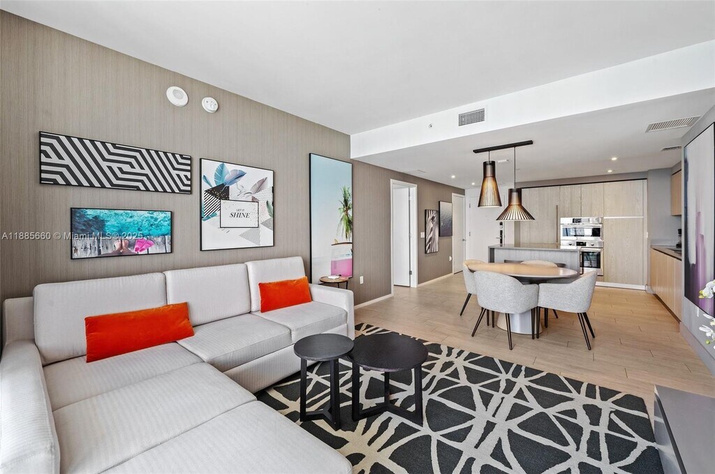 Feel at home in this brand new luxury condo in front of Hollywood Beach, offering stunning bay and ocean views from a high floor. This well-appointed 3-bedroom unit mixes natural wood and stone with organic textures and state-of-the-art technology. Highlights include a fully equipped kitchen with stainless steel refrigerator/freezer, glass stove, integrated oven, silent dishwasher, integrated microwave, stove, dishes, coffee maker, hairdryer, electronic safe, iron/ironing board, in-suite washer/dryer, and TVs in each room. Enjoy a large corner balcony with panoramic views. Valet parking is available for a fee: 1–6 nights cost $40 nightly, 7–29 nights cost $15 nightly ($105 weekly), and +30 nights cost $9.33 nightly ($280 monthly). A pack’n play crib is available free upon request. Just beyond the resort, you'll find the Hollywood Beach boardwalk and miles of Blue Wave-designated beaches. Surrounded by lots of restaurants and the world-famous Gulfstream Park, you can dine, enjoy horse races, or try your luck at the casino. To the west, you can visit the famous colossal Hard Rock Guitar Hotel & Casino, and it is the perfect location to be on the beach if you are attending an event at Hard Rock Stadium. To the south, you can continue to the renowned Aventura Mall, or head to South Beach for nightlife. To the north, you can enjoy more shopping and restaurants in the city of Fort Lauderdale. This apartment is minutes from Fort Lauderdale airport. For groceries, you will find a 24-hour Walmart right next door and a Publix Supermarket a two-minute drive away. Swimming is at your own risk, and there is no lifeguard on duty. Children must be supervised by a responsible adult at all times. For your safety, no diving and no running. Please keep all doors closed and the air conditioning on at all times to help prevent condensation and property damage. [SI]