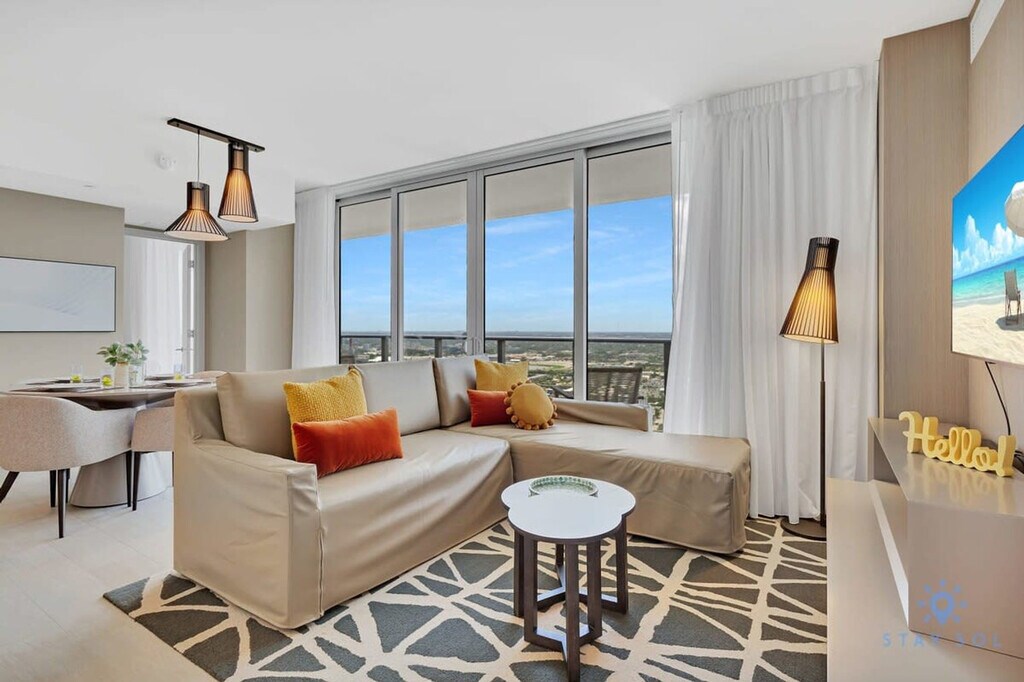 The advertised rate of $5,496/month is the lowest available price, based on a 30 day(s) stay with a move-in date of August 25, 2026. Rates vary depending on the duration of stay, season, and other parameters. For exact pricing and additional pricing components, please visit our website and enter your desired move-in and move-out dates. The rate is applicable when billed upfront; it can be higher if billed in multiple payments. Feel at home in this two-bedroom unit on the 42nd floor of a luxury condo in front of Hollywood Beach, offering stunning bay views. This unit features 2.5 bathrooms and a balcony. This well-appointed apartment mixes natural wood and stone with organic textures and state-of-the-art technology. Highlights include a fully equipped kitchen with stainless steel refrigerator/freezer, glass stove, integrated oven, silent dishwasher, integrated microwave, stove, dishes, coffee maker, hairdryer, electronic safe, iron/ironing board, and an in-suite washer and dryer. Each room has a TV. Amenities include valet parking, two infinity-edge ocean and bay view pools, a sundeck, private cabanas, a fitness center, and a hot tub. A Pack’n Play crib is available upon request. Just beyond the resort, you'll find the Hollywood Beach boardwalk and miles of Blue Wave-designated beaches. Surrounded by lots of restaurants and the world-famous Gulfstream Park, where you can dine, enjoy horse races, or try your luck at the casino five minutes away. To the west, you can visit the famous colossal Hard Rock Guitar Hotel & Casino, which is the perfect location to be on the beach if you are attending an event at Hard Rock Stadium. To the south, you can continue to the renowned Aventura Mall, or if you feel like going on an adventurous nightlife, you can head to South Beach to party all night. To the north, you can enjoy more shopping and restaurants in the city of Fort Lauderdale. The apartment is minutes from Fort Lauderdale Airport. For groceries, you will find a 24-hour Walmart right next door and a Publix Supermarket a two-minute drive away. Swimming is at your own risk, as there is no lifeguard on duty. Children must be supervised by a responsible adult at all times. The property management is not liable for any accidents, injuries, or losses that may occur while using the pool or surrounding areas. Please keep all doors closed and the air conditioning on at all times to help prevent condensation and property damage. [SI]