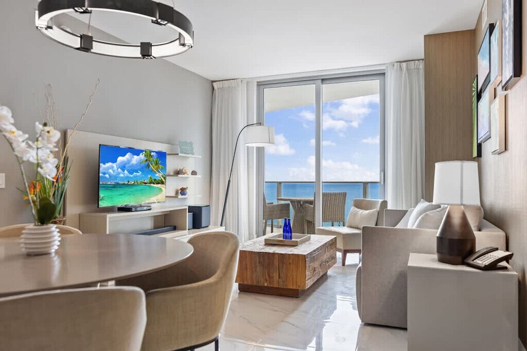 Feel at home in this modern 2-bedroom apartment on the 11th floor, offering 1,136ft² / 105m² of upscale living space with breathtaking ocean and pool views. This beautifully decorated apartment ensures a premium experience with fresh linens and towels provided. Enjoy fast Wi-Fi and full access to 5-star resort amenities. Two single double-thick air mattresses can be provided upon request. Located right on Hollywood Beach, this apartment is in a very central location between Fort Lauderdale and Miami Beach, with beach access. Groceries, restaurants and malls are just 1 mile away, and Fort Lauderdale Airport (FLL) is 9 miles away, while Miami Beach is 20 miles away. Visitors are allowed. Please remember that you're staying in a home, not a hotel, so please treat the space with respect. The host is available 24/7 to answer any questions. [SI]
