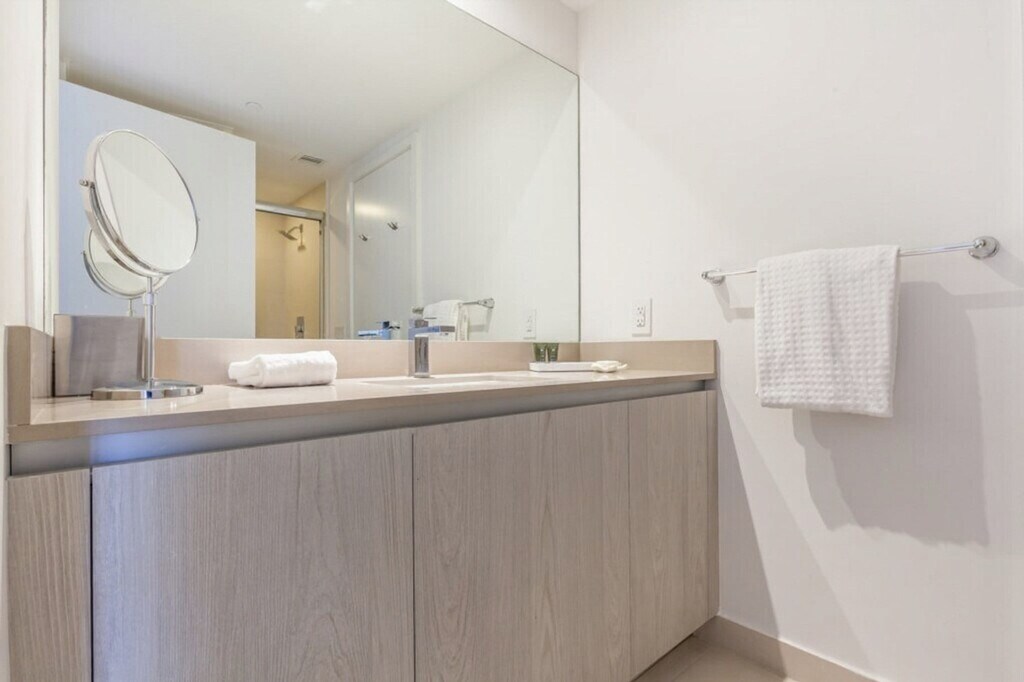 This 2-bedroom suite boasts a large balcony with side ocean views, featuring a king-size bed in the master bedroom, two full-size beds in the second bedroom, and an additional sofa bed in the living room. The unit is fully furnished with a fully equipped kitchen, a dining table for six, and two full bathrooms. Enjoy the convenience of an in-unit washer and dryer. While staying at this luxurious condo-resort, guests have access to state-of-the-art amenities, including a sundeck with private cabanas, an infinity pool overlooking the Atlantic Ocean, a brand new fitness center with a cardio theatre and a yoga and Pilates studio, and two gourmet restaurants offering South Florida’s finest citrus and seafood. Beach service is available for chairs, towels, and umbrellas. Daily cleaning service is available for an extra charge with prior arrangements. A resort fee of $40 per room per night plus 13% tax is applied at check-in, covering beach access, loungers, towels, fitness center, health club, internet, phone calls, pool, and spa access. Valet parking is available with fees ranging from $20 for three hours to $650 per month, depending on the duration of stay. Hyde Beach Resort provides the perfect setting for couples and modern families to explore the myriad of activities and attractions in South Florida. Located in the heart of Hallandale Beach, the resort is surrounded by shops, divine dining, lively entertainment, and cultural hotspots. Early check-in and late check-out are available for a fee of 50% of the nightly rate, subject to availability. Please reach out in advance for approval. [SI]