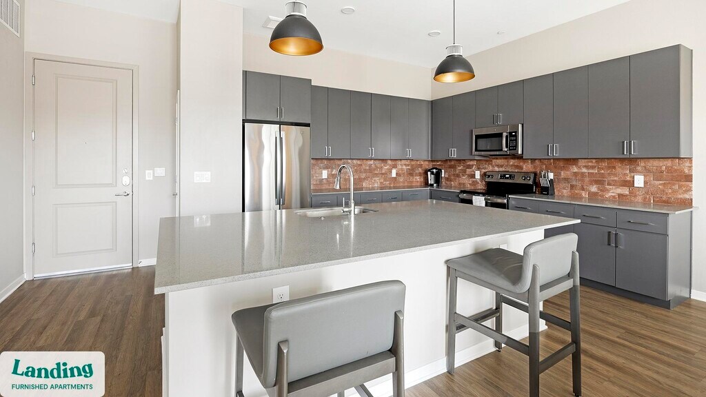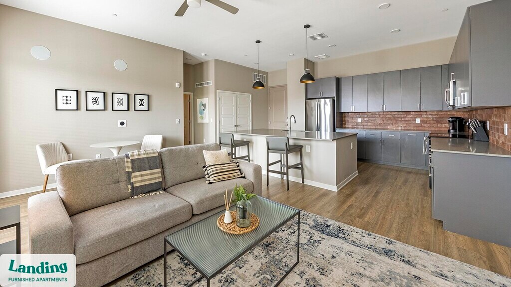 Landing offers flexible lease terms from weeks to months. Please always visit our website or contact us for the latest pricing & availability. Stay longer, save more: 6-Month Minimum base rent: starts at $2164/mo 12-Month Minimum base rent: starts at $1987/mo Landing offers flexible leases across a network of over 35,000 fully-furnished apartments throughout 375+ cities so you can rent on your terms, practically anywhere, and avoid the hassle of paying deposits or application fees. Visit to learn about all the benefits of a Landing membership, see our competitive up-to-date pricing, explore available apartments, take virtual tours, and make reservations online without jumping through traditional rental hoops. Landing's apartments at Brix Warehouse District are designed for comfortable, easy living, with the ability to stay as long as you like. Experience living with Landing Every apartment is outfitted with all the modern essentials including: custom-designed furnishings, a fully-equipped kitchen with deluxe stainless steel appliances, a gourmet coffee maker, premium linens, Smart TVs, and incredibly fast, reliable internet for working from home. When you live with Landing, you'll enjoy a hassle-free experience with the added benefit of 24/7 access to our dedicated member experience team. Some of the nitty-gritty: a background check and proof of income are required; we're completely smoke-free; bundled utility packages and pricing vary based on length of stay; pet-friendly options available; listed price reflects a 12-month minimum stay.