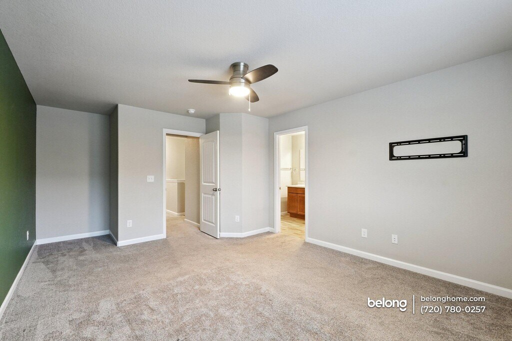 This lovely home brings together an open layout, generous storage, and warm finishes to create a comfortable place to settle in. Its open-concept main floor flows easily from the living area into a spacious kitchen, where a huge island anchors the space and provides room for casual meals, prep, or gathering with friends. Pendant lighting, recessed lights, and clean-lined cabinetry add to the inviting feel, while a smart refrigerator adds everyday convenience. All three bedrooms feature spacious walk-in closets, giving you plenty of room to stay organized without sacrificing comfort. A full laundry room on the second floor keeps daily routines close at hand. With 2.5 baths, mornings and evenings feel manageable, even with a full household. The two-car garage includes a south-facing driveway, a thoughtful touch for winter months. Beyond the front door, the community offers amenities designed to support a relaxed lifestyle. Enjoy access to a community center with a gym and kid activities, plus a playground for outdoor time. The neighborhood is dog friendly, and up to three pets are allowed, making it easy to feel at home with your furry companions. Conveniently located near I-25, this area places you close to Colorado Springs Airport, nearby shopping and dining options, and easy access to a local military base, helping keep commutes and errands simple. *Our homes come as-is with all essentials in working order. Want upgrades? Request it through the Belong app, and our trusted pros will take care of the rest!
