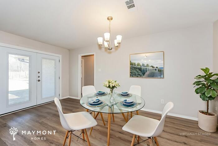 MOVE-IN READY This home is move-in ready. Schedule your tour now or start your application today. Monthly Recurring Fees: $25.00 - Smart Home Located in Benbrook, TX, this four-bedroom, two-bath home offers a well-designed single-story layout with open living spaces and practical features throughout. A two-car garage provides everyday convenience, while the home’s design supports comfortable and functional living. Step into the open-concept living room, finished with durable LVP flooring and a ceiling fan, offering plenty of space to relax or gather. The kitchen connects seamlessly to the living and dining areas and features a central island, stainless steel appliances, and ample upper and lower white cabinetry for storage. Double doors off the breakfast nook lead directly to the backyard, extending the living space outdoors. The primary bedroom includes LVP flooring, a ceiling fan, and an en-suite bathroom for added privacy. All additional bedrooms are finished with LVP flooring and offer generous closet space, maintaining a cohesive look throughout the home. A well-sized hall bathroom features a larger vanity, supporting everyday use. Outside, the large fenced backyard provides open space for outdoor enjoyment. With its single-story layout, open-concept design, and thoughtful features, this Benbrook home offers space, comfort, and functionality in a convenient setting. Apply now to make this home your next place to live. *Maymont Homes provides residents with convenient solutions, including simplified utility billing and flexible rent payment options. Contact us for more details. This information is deemed reliable, but not guaranteed. All measurements are approximate. Actual product and home specifications may vary in dimension or detail. Images are for representational purposes only. Some programs and services may not be available in all market areas. Prices and availability are subject to change without notice. Advertised rent prices do not include the required application fee, the partially refundable reservation fee (due upon application approval), or the mandatory monthly utility management fee (in select market areas.) Residents must maintain renters insurance as specified in their lease. If third-party renters insurance is not provided, residents will be automatically enrolled in our Master Insurance Policy for a fee. Select homes may be located in communities that require a monthly fee for community-specific amenities or services. For complete details, please contact a company leasing representative. Equal Housing Opportunity. Estimated availability date is subject to change based on construction timelines and move-out confirmation. This property allows self guided viewing without an appointment. Contact for details.