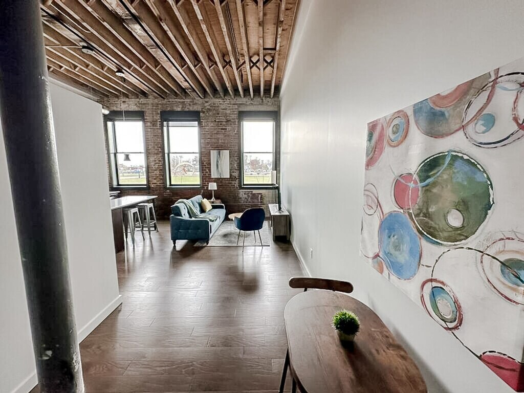 Feel at home in this bright and airy 1-bedroom loft, full of character, featuring exposed brick, high ceilings, and large windows that fill the space with natural light. The open-concept kitchen and living area include modern appliances and a central island. The bedroom has a spacious closet, and the full bathroom is clean and contemporary. An in-unit washer and dryer, high-speed internet, and central air make your stay effortless. This apartment is fully furnished with all the best amenities, toiletries and complementary goods to make your accommodation an unforgettable experience. Onsite parking is available for guests in the complex parking lot. Additional parking info will be provided within the check-in instructions. You cannot receive mail here. This is an apartment building and we do not have any control over the availability or quality of the amenities. We will not be issuing a refund if any of the amenities are unavailable during your stay. Additionally, the building itself is not managed by us and therefore anything outside of the unit is not maintained by us. Guests have access to their unit and the common area. Guests will be able to view their check-in info on their arrival date. This info will include parking instructions and the code for the lockbox containing their key fob. [SI]