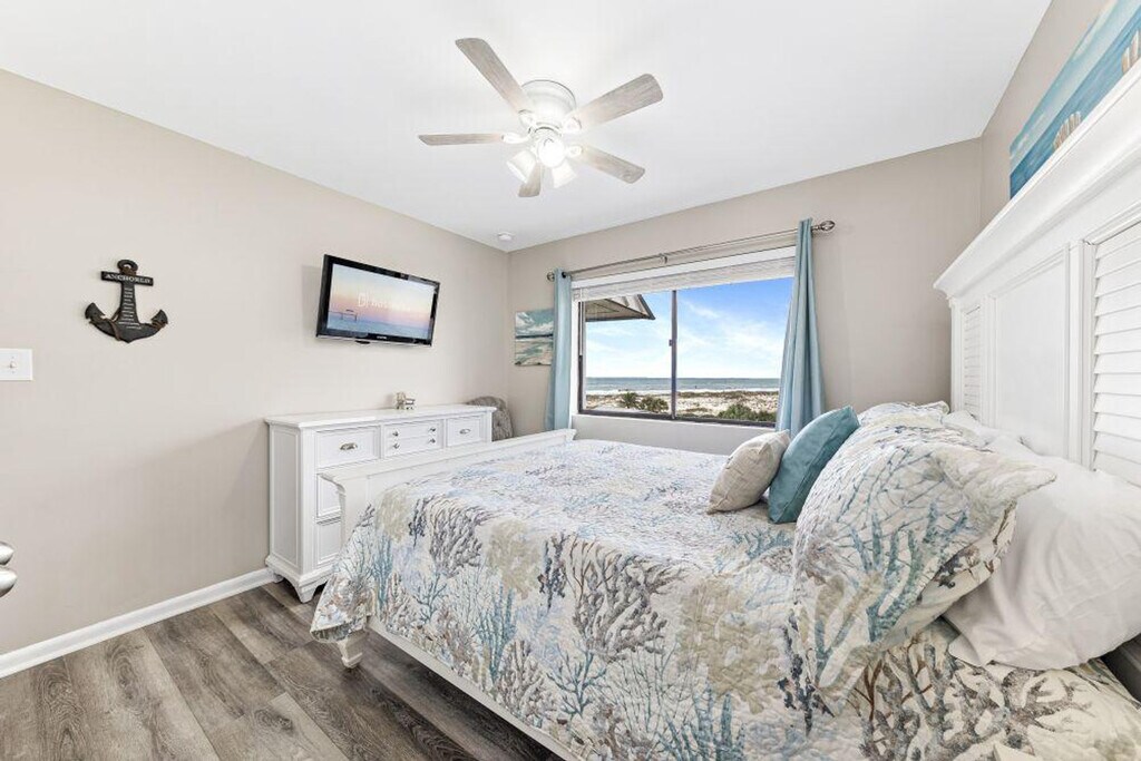 This modern 2-bedroom and 2-bath condominium located at Gulf Shores Plantation is a perfect "Beach Life Retreat" for your family or a weekend getaway with a friend. Enjoy great views with the outdoor pool overlooking the beach and the beautiful waters of the Gulf of Mexico. Vacation time doesn't get any better than this! This 2-bedroom condo comes with a private balcony and great views. On-site amenities include amazing indoor and outdoor pools, hot tubs, tennis courts, and so much more! The master bedroom offers a queen bed. Step out on the balcony and listen to the waves crashing while you enjoy your morning coffee. This unit is fully renovated and is a spacious and comfortable retreat ideal for a family getaway. The living space comes with a great dining table perfect for morning breakfast or a cozy family dinner. The condo is equipped with a refrigerator, stove, oven, dishwasher, microwave, coffee maker, blender, toaster, and all dishes and silverware. Every bedroom has large windows letting in plenty of light. Parking passes for a maximum of 2 cars are available. Access to 11 laundry rooms is provided, with one on each floor of buildings 1, 2, and 3, and 2 on the first floor of building 4. Laundry facilities are paid. So much to do on the grounds of the Gulf Shores Plantation and your unit is close to the Sassy Bass Restaurant and should never disappoint! Soft white sands and warm Gulf waves are steps away. Fresh food from the Sassy Bass Grill is nearby. Hop in the car, and Gulf Shores' shopping and dining are a 15-mile drive away. Nine miles westward are Fort Morgan's beaches and boardwalks, and you have access to Dauphin Island via the Mobile Bay Ferry. The condo is a smoke-free facility and the resort does not permit pets, except for service animals. Any violation of the smoking policy will incur a $250 fine plus cleaning costs necessary to remove smoke odors from the unit or linens. No parties or events are allowed, and violators will be charged a $500 fine. Any violation of the no-pets policy will incur a $200 fine. For March 1st to May 1st, the minimum age requirement for check-in is 25 years old. You must be at least 22 years old to rent this property. For same-day late check-ins, you need to get the host's approval before booking. The home has a maximum occupancy of guests, and renters who exceed the occupancy limit are subject to eviction. A State Identification Card or Driver's License copy will be requested upon booking. There are security cameras installed outside for your safety and protection, but surveillance cameras are not inside any of the properties. Beach towels are not provided. We are not responsible for any accidents, injuries, or stolen or damaged items that occur while on the premises, its facilities, or parking lots. [SI]