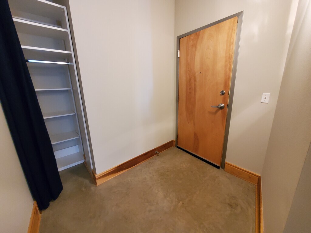 With views of the new soccer stadium, this loft has multiple amenities. Concrete floors, professional storage, exposed brick, in unit washer and dryer for use. This bathroom boasts a huge soaking tub and furniture style vanity. Natural light comes though the picturesque window to the contemporary kitchen and living room. This is a smoke free unit. Qualifications: Gross income of 3 times the rent with a preferred credit score of 565 or higher with no evictions. Criminal history is looked at on a case-by-case basis. Applications are $60 per adult 1st month’s rent, security deposit, administration fee of $150 and a processing fee are due at lease signing.