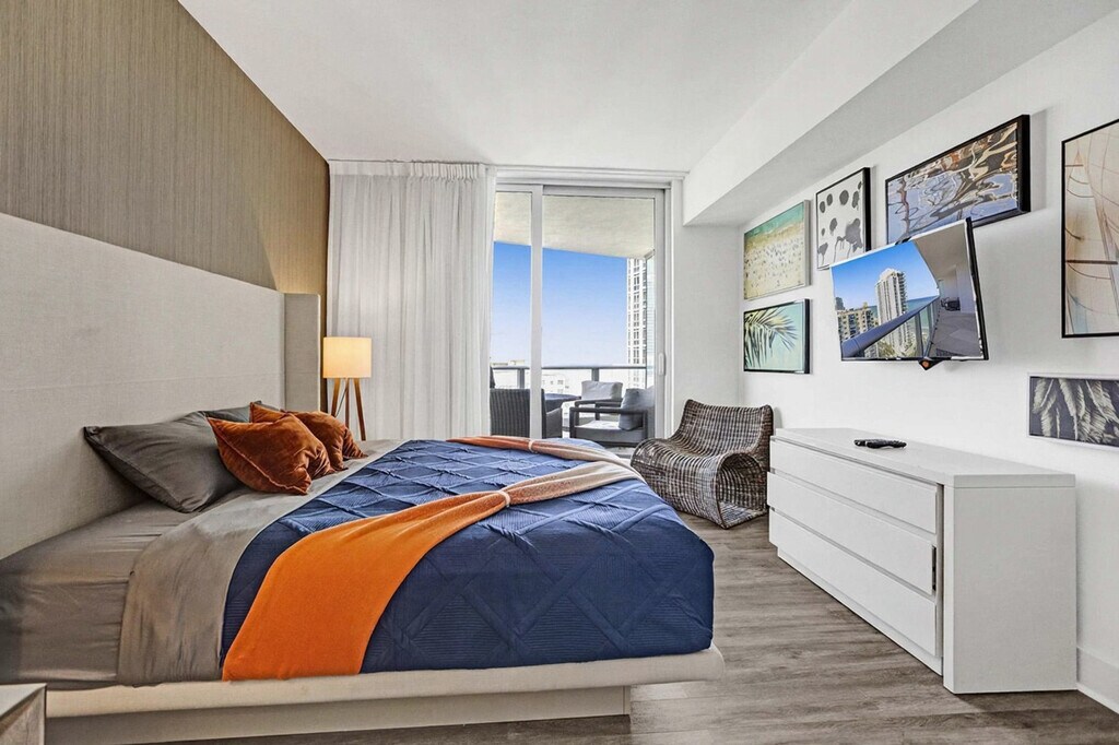 Feel at home in this luxury 2-bedroom ocean view apartment located in Lyfe Resort and Residence, in front of Hollywood Beach and a few minutes' drive to Aventura Mall and Sunny Isles Beach. This well-appointed apartment mixes natural wood and stone with organic textures and state-of-the-art technology. Highlights include a fully equipped kitchen with stainless steel refrigerator/freezer, glass stove, integrated oven, silent dishwasher, integrated microwave, stove, dishes, coffee maker, hairdryer, iron/ironing board, and in-suite washer/dryer. Each room has a TV. Enjoy a panoramic view of the ocean from the large corner balcony and have plenty of sunlight during the day. Amenities include two infinity-edge ocean pools, a sundeck, private cabanas, a hot tub, a fitness center, and beach service. A pack and play crib is available upon request. Package service is available Mondays to Sundays (8AM - 4PM) for $5.5 per package and after hours for $27.5 per package. Valet parking is available for 1 to 7 days at $35 per day, 8 or more days at $30 per day, a monthly rate at $650 per month, and stays of 6 months or more at $480 per month, plus applicable taxes. Just beyond the resort, you'll find the Hollywood Beach boardwalk and miles of Blue Wave-designated beaches. Surrounded by lots of restaurants and the world-famous Gulfstream Park, where you can dine, enjoy horse races, or try your luck at the casino five minutes away. To the west, you can visit the famous colossal Hard Rock Guitar Hotel & Casino, which is the perfect location to be on the beach if you are attending an event at Hard Rock Stadium. To the south, you can continue to the renowned Aventura Mall, or if you feel like going on an adventurous nightlife, you can head to South Beach to party all night. To the north, you can enjoy more shopping and restaurants in the city of Fort Lauderdale. The apartment is minutes from Fort Lauderdale Airport. Nearby construction may be audible on weekdays during daytime hours. The apartment is built with impact glass doors, ensuring that when you’re ready to unwind, simply close the balcony doors and you’ll enjoy a calm, quiet space once again. Guests must complete identity verification and choose between a damage waiver or a refundable security deposit. Please keep all doors closed and the air conditioning on at all times to help prevent condensation and property damage. Swimming is at your own risk, as there is no lifeguard on duty. Children must be supervised by a responsible adult at all times. No diving or running is allowed. The property management is not liable for any accidents, injuries, or losses that may occur while using the pool or surrounding areas. A resort fee will be charged at check-in time at the property. [SI]