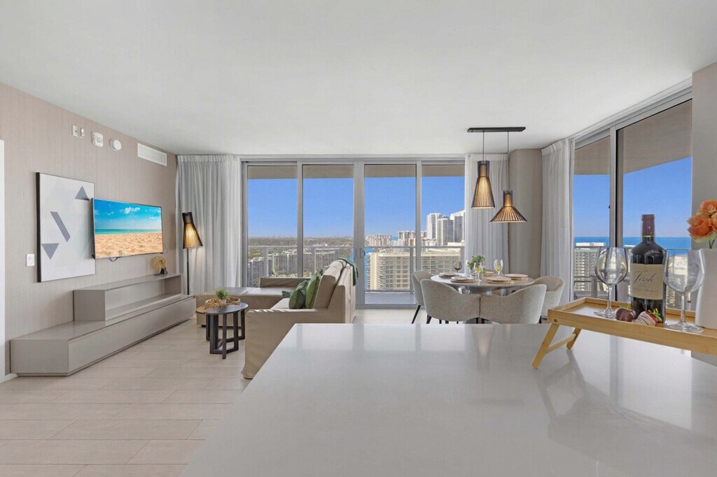 The advertised rate of $5,573/month is the lowest available price, based on a 30 day(s) stay with a move-in date of August 31, 2026. Rates vary depending on the duration of stay, season, and other parameters. For exact pricing and additional pricing components, please visit our website and enter your desired move-in and move-out dates. The rate is applicable when billed upfront; it can be higher if billed in multiple payments. Feel at home in this brand new luxury condo in front of Hollywood Beach. This 18th-floor, two-bedroom unit features a bay and ocean view. This well-appointed apartment mixes natural wood and stone with organic textures and state-of-the-art technology. Highlights include a fully equipped kitchen and a large corner balcony to enjoy a panoramic view of the ocean and the bay. The fully equipped kitchen offers a stainless steel refrigerator/freezer, glass stove, integrated oven, silent dishwasher, integrated microwave, stove, dishes, coffee maker, hairdryer, electronic safe within the suite, iron/ironing board, and in-unit washer/dryer. There are also TVs in each room. Amenities include two infinity-edge ocean and bay view pools, a sundeck, private cabanas, a fitness center, and a hot tub. Valet parking is available for a fee of $42 nightly for 1–6 nights, $15 nightly ($105 weekly) for 7–29 nights, and $9.33 nightly ($280 monthly) for 30+ nights. A pack’n play crib is available upon request. Just beyond the apartment, you'll find the Hollywood Beach boardwalk and miles of Blue Wave-designated beaches. Surrounded by lots of restaurants and the world-famous Gulfstream Park, where you can dine, enjoy horse races, or try your luck at the casino five minutes away. To the west, you can visit the famous colossal Hard Rock Guitar Hotel & Casino, and it is the perfect location to be on the beach if you are attending an event at Hard Rock Stadium. To the south, you can continue to the renowned Aventura Mall, or if you feel like going on an adventurous nightlife, you can head to South Beach to party all night. To the north, you can enjoy more shopping and restaurants in the city of Fort Lauderdale. A 24-hour Walmart is right next door, and a Publix Supermarket is a two-minute drive away. You are also welcome to use Instacart for grocery delivery. A resort fee will be charged at check-in. Swimming is at your own risk, as there is no lifeguard on duty. Children must be supervised by a responsible adult at all times. No diving or running is allowed. Please keep all doors closed and the air conditioning on at all times to help prevent condensation and property damage. ?? Valet ParkingNot included with the booking.?? Parking Rates (includes unlimited in & out privileges)• 1–6 nights ? $42 nightly• 7–29 nights ? $15 nightly ($105 weekly)• +30 nights ? $9,33 nightly ($280 monthly)?? Pack’n Play CribAvailable FREE upon request.?? Security DepositA refundable hold is placed at check-in and automatically released after check-out.? Please noteDesign and décor may vary slightly from photos. Some items shown are for staging purposes only.?? Stay Sol is the Exclusive operator of this property. [SI]