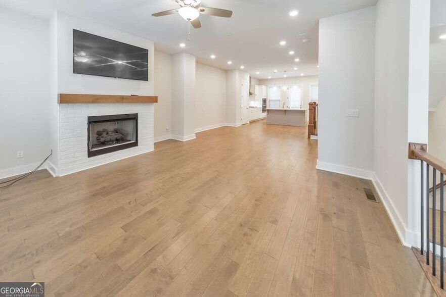 Welcome to this stunning townhome in downtown Woodstock built in 2021! This stately 4 bed / 3.5 bath end unit townhome is situated in a prime location on Main Street and only 0.7 miles away from all the fun in downtown. As you enter the home, you'll be greeted by an abundance of natural light that floods the open concept living area, complete with 10-foot ceilings and an accent fireplace. The beautiful kitchen is a chef's delight, featuring an oversized island and stainless steel appliances. Retreat to the primary bedroom that boasts three oversized windows and a luxurious ensuite with a double vanity, a seamless shower, and a spacious walk-in closet. The private terrace level is home to the fourth bedroom, accompanied by a full bathroom. This versatile space can be used as a guest suite, home office, or recreational area, providing endless possibilities to suit your needs. Step out onto your private back deck that overlooks the fenced-in yard that adds privacy and security. Take advantage of the city's golf cart registration, and zip downtown to enjoy breweries, plenty of dining options, concerts, and all the exciting events Woodstock has to offer. Monthly HOA fees are paid by the landlord and includes trash service. Tenant to pay all utilities. $500 non refundable deposit and one month's rent security deposit.