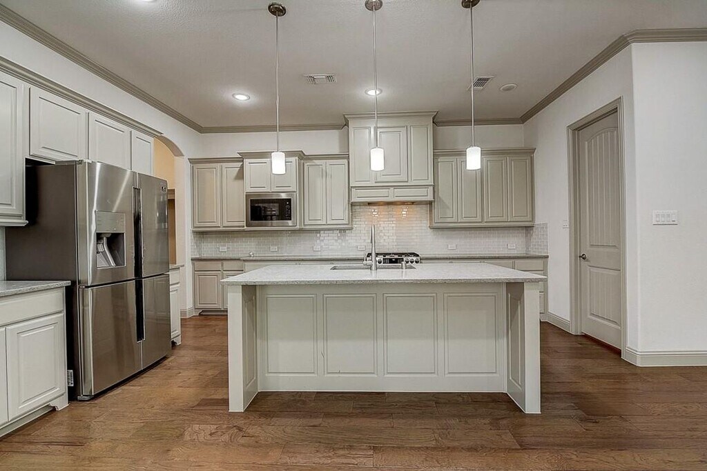 Welcome to this stunning 4-bedroom, 3-bathroom home located in the vibrant city of Frisco, TX. This property boasts an open floor plan that seamlessly integrates the living area with an oversized kitchen island, perfect for entertaining. The kitchen is a chef's dream, equipped with a gas cooktop, stainless steel appliances, granite counters, and convenient pot drawers. The home features two primary suites, one on each floor, with the upstairs suite offering access to a secondary covered balcony. The downstairs primary suite provides a private retreat. The home overlooks a lush community greenbelt, offering serene views. As an added bonus, this home is zoned for the highly-rated Frisco ISD schools. This property is a perfect blend of comfort, style, and convenience! Every Pros PM home includes our $45 per month Resident Benefits Package - covering pest control, air filters, credit building, and more. Details at application. Liability insurance options also available.