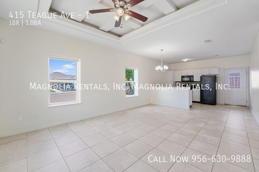 1st Month Free with 13 Month Lease 415 Teague in Edinburg, TX offers a one-bedroom, one-bath residence featuring an open floor plan with vaulted ceilings, ceiling fans, and tile flooring. The kitchen includes granite countertops, a stove/oven, refrigerator, and microwave, and in-home convenience is provided with a washer and dryer. The unit has a walk-in closet and a master bath, and central AC keeps the space comfortable. The gated property is pet friendly with breed restrictions, offers 24/7 maintenance support, and requires a 12-month lease with tenants responsible for all utilities. No smoking is allowed. 12 Month Lease 24/7 Maintenance Support Central Ac Granite Countertops Pet Friendly With Breed Restrictions Tile Floor