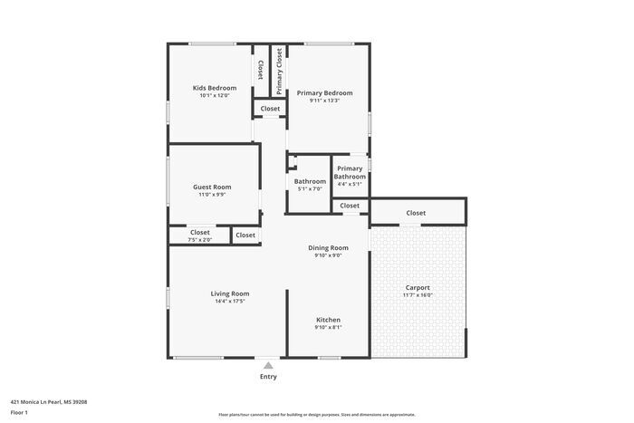 421 Monica Ln se encuentra en el código postal 39208 de Pearl, MS.
