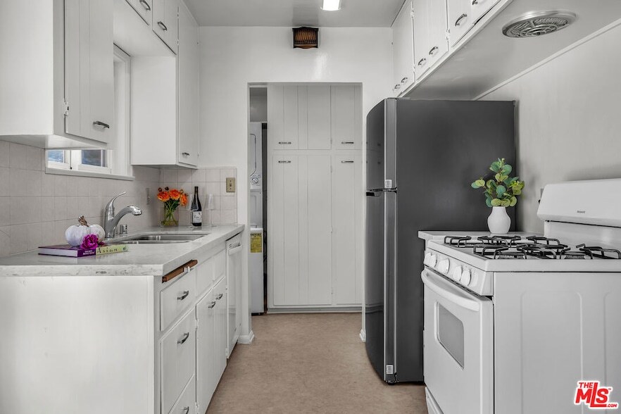 ABSOLUTELY ADORABLE California bungalow. Newly refreshed with refinished hardwood floors throughout, brand new granite countertops and a new, XL stainless steel refrigerator. Layout flows from a wonderfully large living room with its own gas fireplace to the light filled kitchen. The classic gas stove with attached oven will inspire the chef in you, especially with your own side garden area for entertaining. The spacious, single bedroom is right off the hallway and has its own window AC unit and walk-in closet. The bathroom offers a tub/shower combo and lots more closets for storage. Light pours in from every bright window. Inside too is a coveted, stackable washer/dryer and tons more closets for extra storage. Parking is great in your private garage with extra storage. All this is just a few minutes' walk to the heart of the Culver City village cafes, boutiques and nightlife!