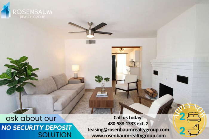 Charming 2-bedrooms, 1-bath tri-plex apartment in the highly sought-after Biltmore area of Phoenix! This beautifully updated home effortlessly blends modern comfort with classic charm. The cozy open layout is perfect for relaxing or entertaining, featuring a warm and inviting fireplace in the living area. The stylish kitchen boasts sleek all-white cabinetry, complemented by black and stainless steel appliances for a contemporary touch. Enjoy the convenience of an in-unit laundry room with a washer and dryer included. Step outside to your own private backyard patio - ideal for outdoor lounging or a small garden retreat. Each unit comes with designated front parking for easy access. Situated in an unbeatable location, this home is just minutes from premier shopping at Biltmore Fashion Park, top-rated restaurants, fitness centers, entertainment, and major freeways. We welcome all furry friends of any size! ~ To Apply go to: Advertised price is the base rental rate only: Monthly Rental Rate includes base rent, all required monthly fees & any optional services selected by the resident. Mandatory fees may include utilities (in whole or in part), which may be billed as a flat fee or through a RUBS utility billing program based on usage, participation in a Resident Benefits Program & pet fees determined by pet screening results. Optional fees may include either a security deposit equal to one & a half month’s rent or participation in our $0 security deposit alternative, the MIS (Move-In Solution) program. Additional charges may apply for activating utility services at properties with individually metered utilities, including but not limited to electricity, water, gas & internet. Other fees may apply for private pools, solar systems, landscaping, or similar property-specific features. Rentable Items: At select multi-family communities, parking spaces, storage units, & other rentable items may be available. All such items are subject to availability, final pricing & availability will be confirmed at the time of lease agreement. Please contact our Leasing Agents for full details prior to applying. Questions? Call: ext. 2 or email: Contact us to schedule a showing.