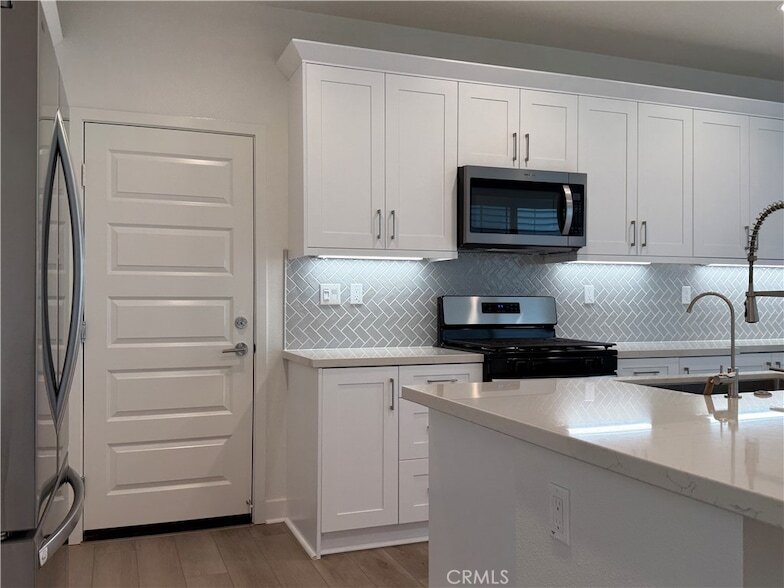 Location! Location! A two-story home located at the end of a quiet cul-de-sac in the desirable Ontario Ranch community. Built in 2024, this 4-bedroom, 3.5-bathroom home spans 2,528 square feet. The main floor features a bedroom with an en-suite bath, perfect for guests or multi-generational living. The spacious living room opens to the kitchen and dining area. The kitchen white cabinetry, stainless steel appliances, and subway tile backsplash. The backyard features a low-maintenance paver patio, ideal for outdoor dining or relaxing. Upstairs, a large loft provides flexible space for a second living area, home office, or playroom. The primary suite includes a walk-in closet, dual vanity, soaking tub, and walk-in shower. Conveniently located near Costco, 99 Ranch Market, with easy access to the 15 and 60 freeways. Located within the Chaffey Joint Union High School District.