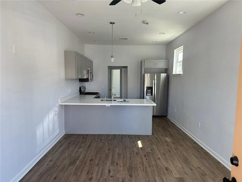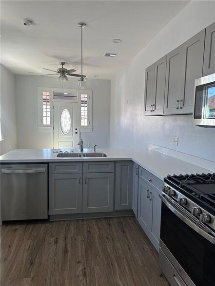 2 bed/2.5 bath half of a double. ALL appliances--SS refrigerator, gas range/oven, microwave, dishwasher, washer & dryer--included. You will LOVE this modified shotgun double with side-hall in Dixon, blocks away from Old Metairie and Xavier University. Easy access to I-10 and Airline. Each bedroom has its own bath and there's a guest bath. The owner has spared no expense in remodeling this unit--9' ceilings, updated wiring and plumbing, neutral paint colors, with high end finishes and appliances. Front and back porch space; separate fenced-in backyard space.