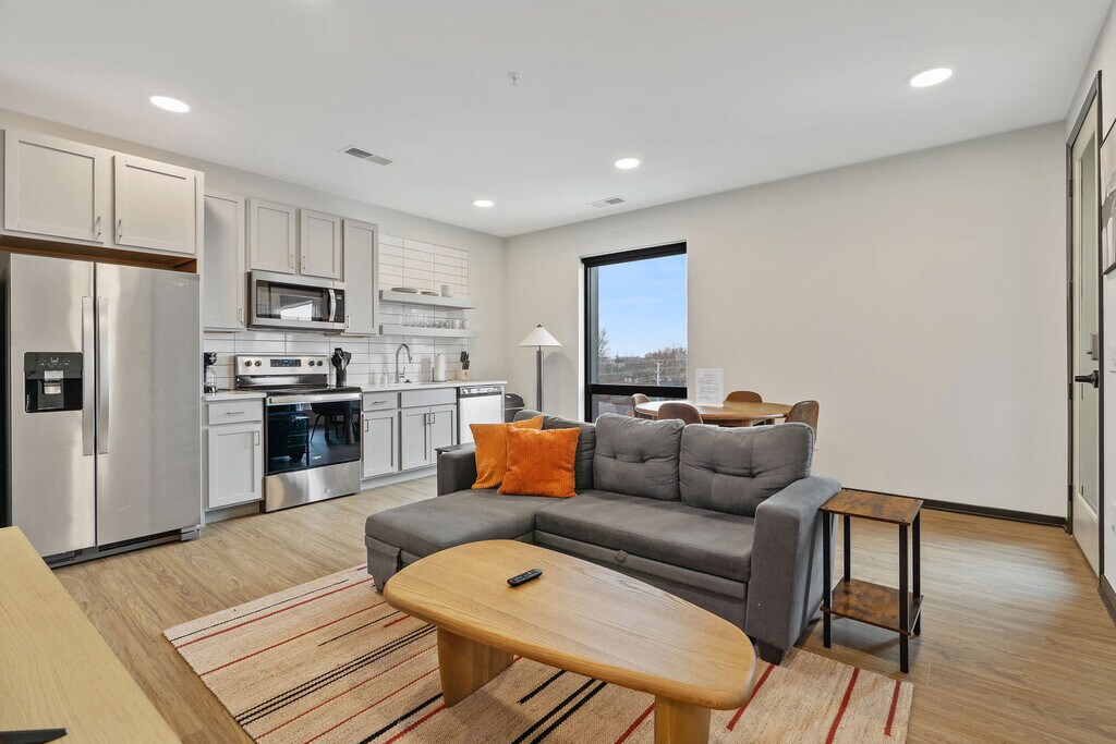 Feel at home in this spacious 1-bedroom apartment located in the heart of Mass Ave. You're steps away from fantastic bars and restaurants. This apartment features inviting living areas, a fully equipped kitchen, and a bathroom complete with toiletries. You can also enjoy the resident roof deck, resident clubroom, in-unit washer and dryer, and smart TV with streaming apps installed. There is also a TV in the living room and complimentary coffee. Located in the historic Lockerbie Square district, this downtown spot offers charming cobblestone streets, 19th-century architecture, and easy access to cultural landmarks like the Athenæum. You're just a short walk from Mass Ave’s vibrant mix of restaurants, bars, and boutiques. Indiana Convention Center is 0.3 miles away, Lucas Oil Stadium is 0.5 miles away, Old National Centre is 0.6 miles away, Phoenix Theatre is 0.7 miles away, and Saint Mary's Catholic Church is 0.6 miles away. This is a smoke-free environment, and smoking of any kind is not permitted within or outside of the apartment, including balconies, patios, or common and/or parking areas. Any sign of smoking is a violation of the stay agreement, which may result in immediate termination and recovery fees beginning at $500. There is a $200 penalty for removing smoke detectors and a $200 penalty for lost key fobs. Check-in is at 4 PM, and check-out is at 11 AM (with a $75/hr late fee). No weapons or drugs are allowed; zero tolerance means police will be called for violating this rule. Guests must agree to not disturb neighbors at all times during the stay and must observe quiet hours from 9pm-8am each day. The apartment is proactively monitored with decibel sensors for compliance with this noise policy. No outside guests are allowed without permission. One towel is provided per guest per stay. A valid photo ID is required to complete the booking. [SI]