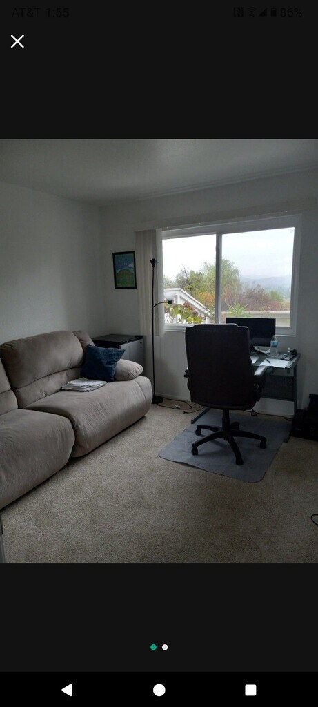Property Id: 2490974 One room available with amazing views of a canyon and mountains of camp pendleton. You will have your own bathroom. Looking for temporary housing or long term. I live there and own the home. Would rather no pets, but could make an exception with a pet deposit. Rent would include utilities and internet. The home is already furnished. Need to lease the room as soon as possible and am welcoming phone calls and personal tours. The location is very close to freeway access, Camp Pendleton, hospitals, schools, shopping and about 15 minutes from the coast. The bedroom photo shows a couch and a desk, which have been removed and a bed is in there now, which can stay or be removed. Plenty of privacy as I do not have other roommates, kids, visitors or pets.