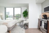 Feel at home in this luxurious studio apartment located in Central Cambridge Kendall Square, one of the most exciting places to live, work, shop, and play in the Boston/Cambridge area. The apartment features a deluxe king-size memory foam mattress with indulgent custom linens, a spacious closet, and a fully equipped gourmet kitchen with Shaker-style birch cabinets and stainless steel appliances. Enjoy the convenience of an in-unit washer and dryer and free parking for monthly guests. The building offers a mezzanine terrace with a garden, a fitness center, and a business center. The apartment's gourmet kitchen is fully equipped with everything you need, including dishes, glasses, cutlery, and pots and pans. It features granite countertops and full-size Energy Star GE stainless steel appliances, including a four-burner stove, oven, microwave, dishwasher, and side-by-side refrigerator with an ice maker. The dining area provides seating for two, and the entertainment center includes a flat-panel LCD TV, DVD/VCR player, and CD stereo system. Parking is free for monthly guests. For others, parking is available for $35 per day in the underground garage. Located in Central Square, this apartment is just 10-15 minutes away from Kendall/MIT, Harvard Square, Downtown Boston, Back Bay, Beacon Hill, Seaport District, Logan International Airport, Longwood Medical Center, MGH, Boston Medical Center, and Tufts Medical Center. The neighborhood offers excellent walkability and access to public transportation, making it easy to explore the best of the Boston/Cambridge area. Quiet hours are from 9pm to 9am. The apartment is smoke-free, and smoking violations will incur a $1000 fee. No events are allowed, and violators will be asked to leave immediately with no refund. All guests over 18 are required to submit a government photo ID prior to access. Please do not interact with building staff or maintenance team; fines of $500 per day will be imposed for violators. The apartment includes a work desk with a lamp and offers both wired and wireless Internet access, making it remote work-friendly. [SI]