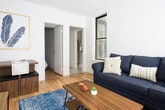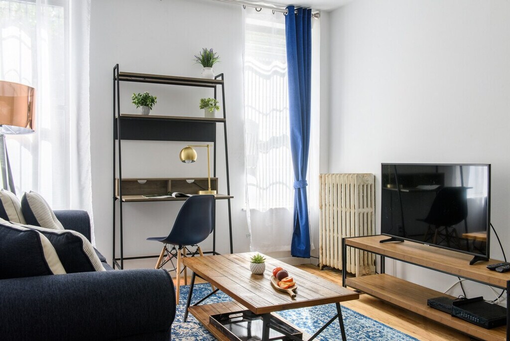 Feel at home in this brand new and modern 2-bedroom apartment located in prime Midtown West. This spacious and inviting apartment is nestled in a well-maintained boutique walk-up building in the heart of Hell’s Kitchen, offering a fantastic blend of comfort and convenience at a great value. With beautiful hardwood floors throughout and a modern bathroom, this apartment is the perfect city retreat. Welcome to this charming 2-bedroom, 1-bathroom apartment featuring a renovated, fully equipped kitchen with a stove, oven, and full-size fridge—perfect for home-cooked meals. Both bedrooms are thoughtfully furnished, with one room offering a queen-size bed and the second a full-size bed, each with a plush memory foam mattress for a restful sleep. Enjoy relaxing in the cozy living area with a 50” Smart TV, or catch up on work at the convenient desk space. High-speed WiFi, fresh linens, towels, and pillows are all included for a seamless move-in experience. The location of this apartment is truly unbeatable, offering easy access to an abundance of cultural and recreational activities. The world-famous museums, such as the Metropolitan Museum of Art and the Museum of Modern Art, are just a stone's throw away. The neighborhood is home to many great cafes, delis, and restaurants serving a wide variety of cuisines. Whether you're in the mood for a quick bite or a fancy dinner, you'll find something to suit your taste. The area also boasts many gyms and fitness studios, making it easy to stay active. The nightlife scene is vibrant, with a wide variety of bars, pubs, and live music venues to choose from. For a peaceful stroll, the beautiful Hudson River boardwalk is just a short walk away. New York City's heating season is until the end of May. Beginning around mid-April, window air conditioning will be installed in the apartment. You can request an earlier installation if needed. [SI]