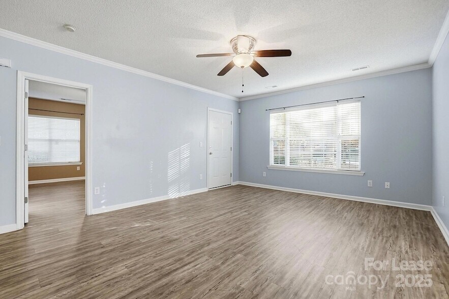 Beautiful end-unit townhome located in Matthews!. This townhome offers a spacious living and dining area with modern gray LVP flooring throughout the main level. The kitchen features stainless steel appliances and a cozy, functional layout. The primary suite is located on the main floor and includes matching LVP flooring, an attached bath with a garden tub, and a walk-in closet. Upstairs, you ll find two additional spacious bedrooms along with a second full bathroom. Washer and dryer connections are conveniently located between the upstairs bedrooms. Enjoy the covered patio and community amenities including a pool, clubhouse, and fitness center. The property is tucked toward the back of the community, offering added privacy and the feel of a detached home.