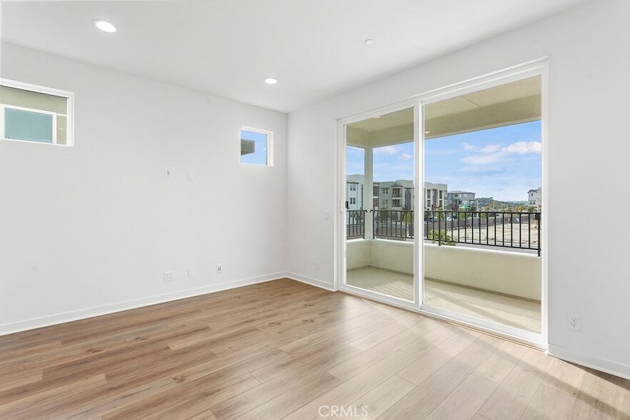 Available April 1st, this three-story home in Rienda Ranch Camp features a modern, open-concept layout with recessed lighting and contemporary finishes throughout. The second level is the main living space, centered around a kitchen with white cabinetry, solid surface counters, and a stainless-steel appliance package. The living room opens through large sliding glass doors to a private balcony and comes prepped for a wall-mounted TV, with a dining area and powder room completing the floor. Both bedrooms are located on the third level, each with its own private en-suite bathroom; the primary suite includes a double vanity and walk-in closet, while the laundry closet with stacked machines is conveniently placed between them. The first floor offers a main entrance through a future landscaped garden area and provides direct access to the large two-car tandem garage. Residents enjoy full access to community amenities including a lagoon-style pool, lap pool, spas, and a dog park. Please note there is a $75 monthly solar fee in addition to rent, and there is a one-pet maximum for this property.