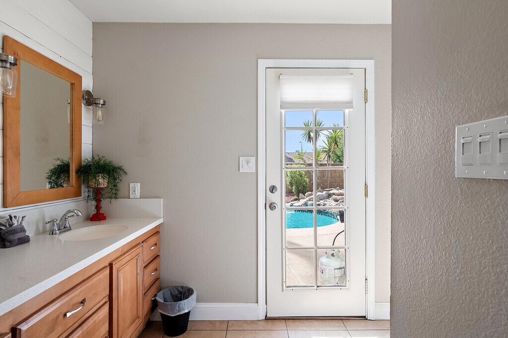 Feel at home in this spacious single-story house located just half a mile from Ahwatukee Lakes Golf Club. This fully furnished home features four bedrooms and two full bathrooms, along with a two-car garage, providing ample space for comfort and convenience. The house offers a king bed, two queen beds, two full beds, and three twin beds, accommodating a variety of sleeping arrangements. Enjoy the pool and Jacuzzi, along with a fully equipped kitchen that includes a full-size fridge, 4-burner stove, microwave, oven, dishwasher, air fryer, and more. The living space is enhanced with five smart TVs, high-speed WiFi, and blackout curtains for your comfort. Pets are welcome with a non-refundable fee of $150 per pet. Enjoy free parking on the premises, and take advantage of the outdoor amenities including a pool table, outdoor patio set, dining set, and fire pit. Located conveniently close to various attractions and facilities, this home is 0.6 miles from Ahwatukee Lakes Golf Club and just under 10 miles from Phoenix Airport. Explore nearby attractions such as Papago Park, Phoenix Zoo, and Desert Botanical Garden, all within a short drive. The home is also near shopping centers like Target and Walmart, as well as dining options including Starbucks and Chick-fil-A. This property is pet-friendly with a fee and offers a no-smoking policy. Check-in and check-out times are flexible to accommodate your schedule. The home is remote work-friendly with high-speed WiFi available throughout the property. A laptop computer is not included.