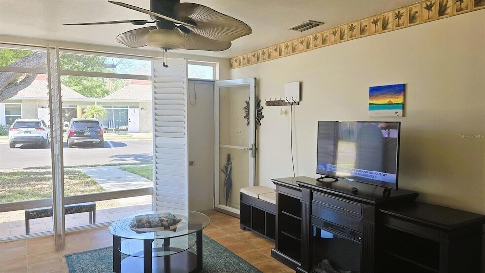 This beautiful turnkey, fully furnished, 1-bedroom condo can now be yours to enjoy. Located in Tahitian Gardens, a beautifully maintained 55+ GATED community. Updated throughout, featuring beautiful wood kitchen cabinets and stainless-steel appliances. Large plantation shutters for all windows complement the open floor plan. The living room includes an entertainment center with fireplace and TV. Stackable washer/dryer is included for your convenience. A private parking space is located directly across the street from the unit. Tahitian Gardens has many activities including shuffleboard, arts and crafts, a bicycling club, bingo, dominoes, card groups and more. Relax in the large, heated swimming pool or walk on the many sidewalks throughout the community and around the lake. Quick access to dining, shopping and public transportation. Walking distance to CVS, Walgreens and Aldi. Minutes away from Tarpon Springs, the Sponge Docks and the beach at Howard Park. Shown by appointment only.
