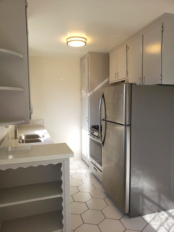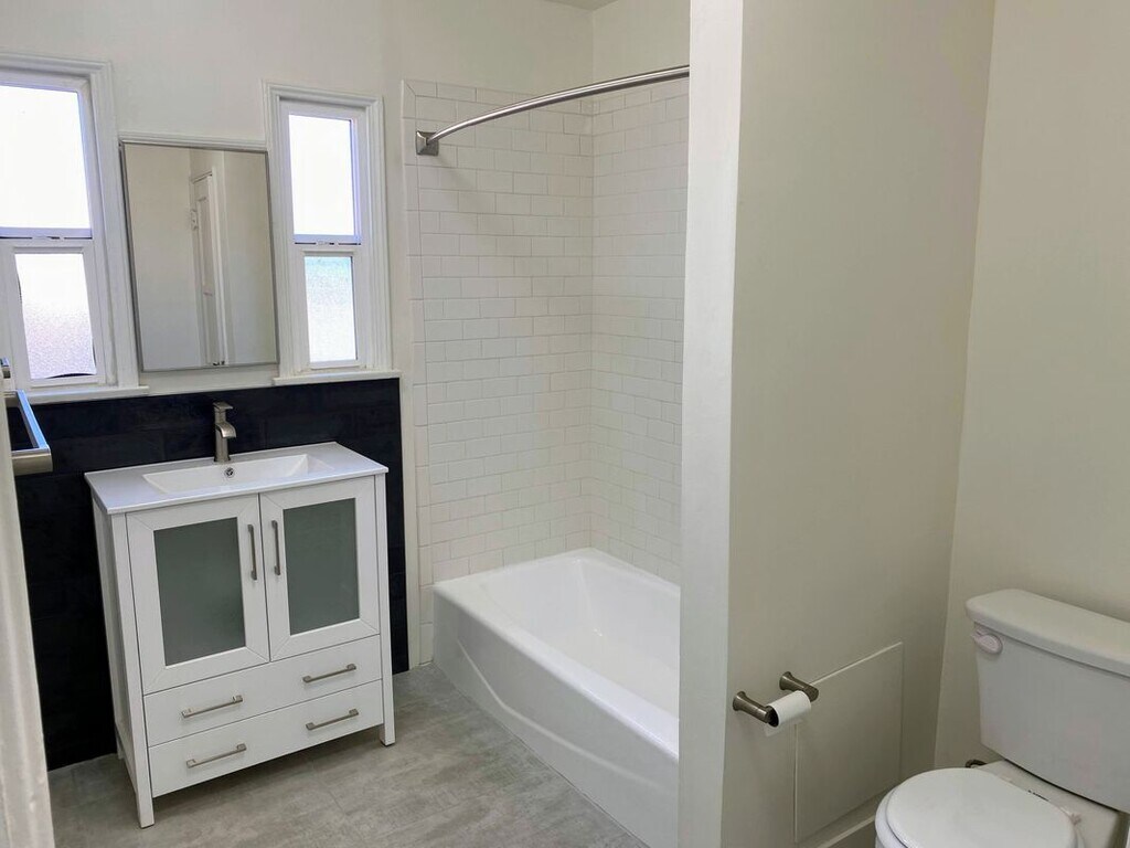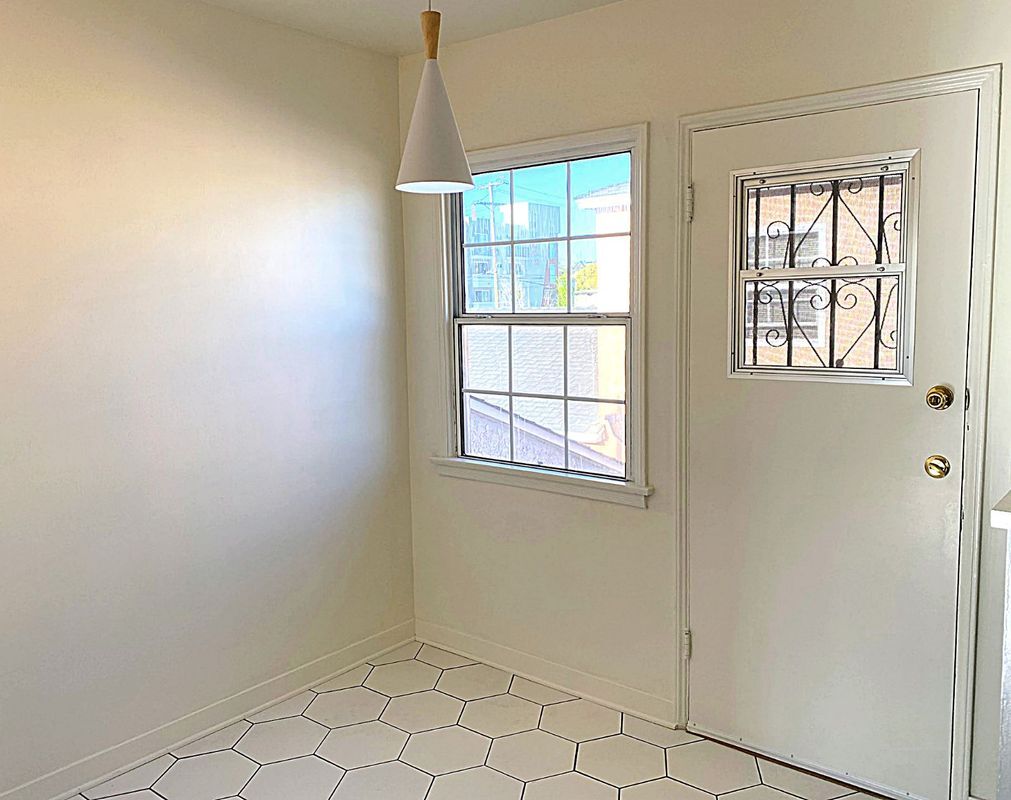 **Upgraded TOP FLOOR 2BR/1BA apartment with direct access to a private common gated backyard for the convenience of a furry friend. Easy, straight access to the Westside and DTLA without Westside and DTLA Prices!! Lots of sunlight. NO COMMON WALLS. No one in front, behind, or either side of you. Located in one of the few extremely walkable neighborhoods right in the heart of car-crazy LA! Your freshly painted apartment combines retro details with modern, tasteful upgrades and soft LED lighting throughout the unit. Gorgeous hardwood floors in the living area and bedroom have been painstakingly refinished to bring out their original beauty. New quartz countertops and undermount sink in the kitchen with abundant storage available for the epicurean in you. Bold porcelain tile makes a statement as you enjoy a meal in your separate dining area! Large bathroom boasts original, re-glazed iron tub for a soothing bath on those self-care, spa days. New subway tiles and fixtures for the shower and concrete tiles on the floor provide a modern, elegant flourish. Large linen closet for plentiful storage plus new sink and vanity round everything out. 4403 1/2 W. Exposition Blvd. is central to everything thanks to the Expo Line train stop that's a short 2-minute walk away. Easy, breezy Santa Monica or dapper DTLA at your fingertips at all hours of the day. But, wait, you're in the middle of white-hot West Adams with its artistic vibe, hip hangouts, and eclectic eateries, like Delicious Pizza, Highly Likely Cafe, Open Face Food Shop, MizLaLa, Alta Adams, and so much more, all within walking distance...The choice is yours! Your rent also includes one convenient, covered personal parking space for those times when only a car will do because it's L.A.! Additional off-street parking available for a fee. Highlights and Amenities: Top floor unit with no common walls Gorgeous original, re-finished hardwood floors Beautiful new countertops Modern tile in kitchen and bathroom New lighting and fixtures Fresh paint One covered, personal parking space included in rent Additional off-street parking available for fee Easy access to Expo train line No onsite laundry. Numerous convenient public paid laundry facilities nearby.