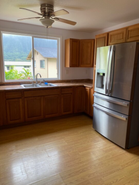 Property Id: 1650045 Four bedrooms, two and a half bath house in Kaneohe. Down stairs is kitchen, 1/2 bath, and a large dining and living space. Lots of storage in the kitchen and throughout the house. Beautiful Koolau Mountain range tiny ocean view from master bedroom . Master bedroom upstairs has one full bathroom. Three other bedrooms and one full bathroom upstairs. All bedrooms have window unit AC. Two car parking is available in the carport. Convenient location; close to Likelike Hwy, Pali Hwy and H3. Washer and dryer in carport. The monthly rent is $4500 plus utilities. Yard service is included in rent. Rental agreement is month to month. We are flexible in terms of lease; case by case. Pet is considered case by case. Back yard is fenced. House is set up as duplex. Property will be available for rent February 2026. Serious inquiries only. We will talk to you on the phone and set up a viewing.