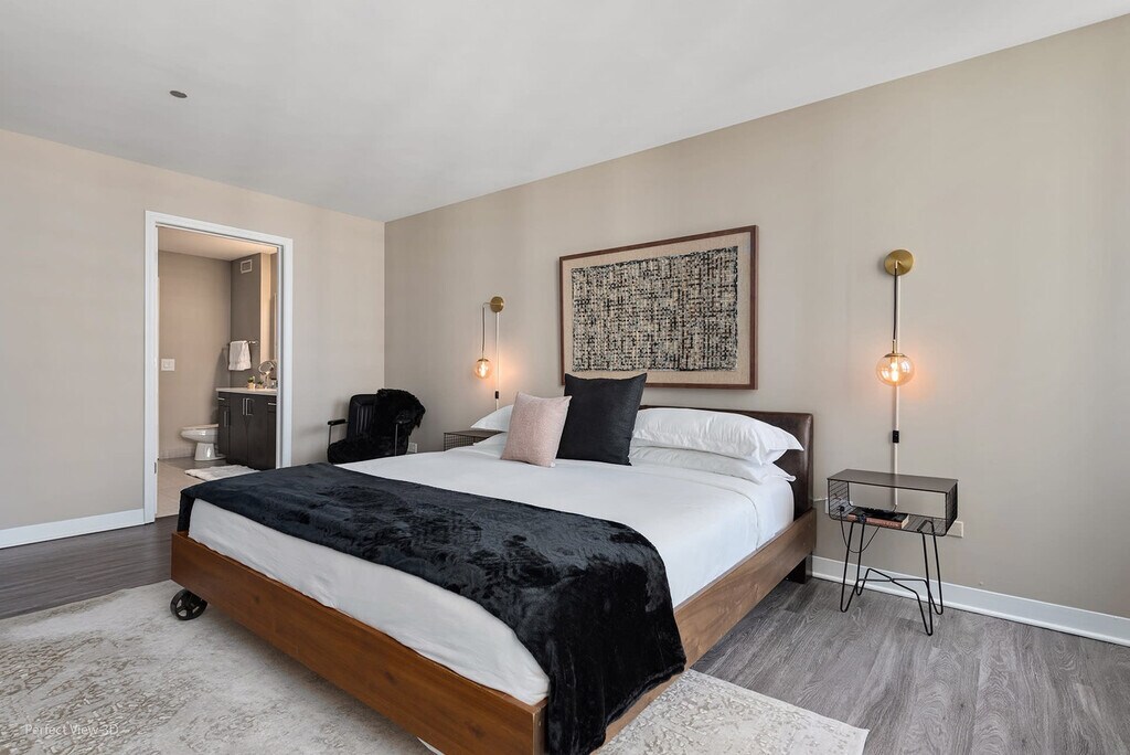 Ideal for tourism and relaxation, 'The Athena' offers a spacious 2-bedroom retreat with a private balcony and stunning views. Feel at home in this well-appointed apartment, perfect for a memorable stay. Enjoy the private balcony with stunning city views. The apartment sleeps six with two queen rooms, a futon, and two single rollaway beds, complemented by two bathrooms. A Pack & Play is available upon request. The space features a Sonos sound system, smart TVs, and a fully equipped chef's kitchen with complimentary Nespresso and tea. The building includes an internet café. Parking is available for $50 per night, but spots are limited, so check availability when booking. The Magnificent Mile, located in downtown Chicago along Michigan Avenue from the Chicago River to Oak Street, is a renowned neighborhood celebrated for its upscale shopping, dining, and cultural attractions. Boasting a mix of historic and modern architecture, the area is home to luxury boutiques, flagship stores, and iconic landmarks such as the Water Tower and the John Hancock Center. With its dynamic atmosphere and central location, the Magnificent Mile is a quintessential destination for both locals and visitors alike. The apartment is just a 5-minute walk to the Museum of Contemporary Art and a 15-minute walk to the Riverwalk. Check-in is at 4 pm (same-day at 6 pm) and check-out is at 11 am. Smoking and vaping of any kind are strictly prohibited and will result in a fine of $500 per occurrence. Pets are not allowed, except for service animals, and failure to comply will incur a full charge of the deposit. Unauthorized late check-out may result in additional charges. Parties, gatherings, or events are not permitted and will result in the forfeiture of the full security deposit and any additional fines set by the condominium rules and regulations where the property is located. Guests are requested to remove their shoes upon entering the premises. Registration Number: R2 [SI]