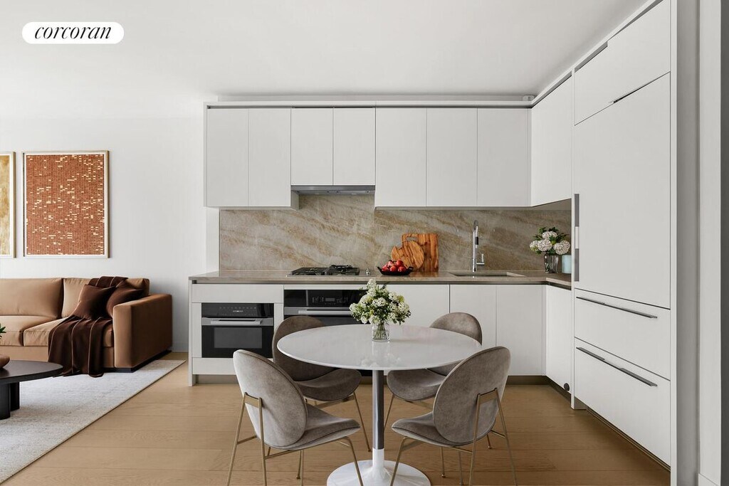 A Rare Indoor-Outdoor Residence in TribecaResidence 212 at 450 Washington is a one-of-a-kind two-bedroom, two-bathroom home offering an expansive 789 sq. ft. private terrace and the rare serenity of quiet Watts Street views. Unlike many downtown residences, this home enjoys a peaceful outlook away from traffic, creating a calm retreat in the heart of Tribeca.The terrace-accessible from both the living room and primary bedroom-is a true extension of the home, large enough for outdoor dining, lounging, and lush container gardening. Whether entertaining or unwinding, this private oasis sets the residence apart.Inside, the interiors are crafted with meticulous detail: 7-inch-wide white oak plank flooring, oversized bronze-finished windows with Caesarstone ledges, and an open-concept layout. The kitchen is equipped with Miele appliances, warm quartzite countertops, matte white lacquer cabinetry, architectural cove lighting, and Dornbracht fixtures-both stylish and functional for everyday living.The primary suite features direct terrace access, a spacious walk-in closet, and a spa-like bathroom with Calacatta Lincoln marble and Dornbracht fixtures. A second terrace-facing bedroom, second full bathroom, and washer/dryer complete the layout.Residents of 450 Washington enjoy a comprehensive suite of amenities: a roof deck with sweeping Hudson River views, golf simulator, lounge with fireplace, private dining, business center, fitness center, and children's imagination space. Exclusive cultural, culinary, and wellness experiences are also available through Related Life.Designed by Roger Ferris + Partners and fully renovated in 2023, the building occupies a full city block along Tribeca's historic waterfront, with a gated entryway leading to an 8,000 sq. ft. landscaped courtyard by Hollander Design. Here, sunlight, water, and downtown energy converge-while Residence 212 provides an unusually quiet and private sanctuary.Application Processing Fee Paid by Tenant: $750