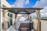 Feel at home in this recently constructed apartment that complies with ADA standards and offers elevator access. Situated in the heart of University Heights, this spacious apartment features an open-layout design and 10-foot ceilings that create a light, bright, and airy ambiance. This apartment features a fully stocked kitchen with stainless steel appliances and a smart Samsung refrigerator. Enjoy the convenience of a washer, dryer, and iron, as well as smart TVs in the living room and both bedrooms. A private balcony with a propane grill and a primary bedroom with a king-size bed and private balcony with a hot tub complete this apartment. Secure, below-ground parking is available. Nestled around all the entertainment that University Heights offers, this apartment provides a modern layout and finishes. Enjoy the vibrant neighborhood with its unique boutiques, eateries, and lively atmosphere. With a walking score of 87, plenty of activities are within reach. For anything outside of the neighborhood, a vehicle or Uber is recommended. San Diego Zoo, Balboa Park, Old Town San Diego, Little Italy, Seaport Village, Mission Beach, Pacific Beach, La Jolla Cove, SeaWorld San Diego, Torrey Pines State Natural Reserve, LEGOLAND California and Disneyland Park are all within a short drive. Pets are not allowed. There is no smoking of any kind (tobacco, marijuana, hookah) on the property. The fine is $500 for smoking. Occupants exceeding the number declared on the reservation will not be permitted to stay past 10PM. Children and infants are considered occupants. No more than 3 guests above the stated number of occupants in your reservation are allowed on premises at any time. Only small speakers playing at low volume are allowed outside. Noise complaints constitute a violation. If any of the strict rules are violated, we reserve the right to cancel your reservation without refund and immediate eviction may occur. Due to the spa being on the second floor balcony, the only way for the spa vendor to access the spa for servicing is through the bedroom. The spa vendor will knock on the door before entering. Please do not turn them away as the spa may become unusable and require extra maintenance if they are unable to service. Guests may have packages delivered to the property during their reservation dates. However, we strongly advise coordinating deliveries for when you are on-site to receive them. The host cannot be held responsible for any packages that are lost, stolen, or damaged prior to or during your stay. San Diego now requires all guests to sign a Good Neighbor Policy document prior to staying. We do enforce their policy so it must be signed in order to receive checkin info, but we will make it super easy for you to initial and sign. It can all be done online. Includes a dedicated workspace and high-speed Wi-Fi. Registration Number: STR-06657L [SI]
