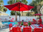 Welcome to SolMate, a charming beach retreat located just a short walk or golf cart drive from the beach. This delightful property features a unique split layout with a three-bedroom main house and a quaint two-bedroom carriage house, all connected by a large paved patio and a perfect saltwater pool. Feel at home with the cozy southern living vibe and farmhouse/country-themed interiors, offering a serene escape to the sugar white sands of the Emerald Coast. The heart of SolMate is its blend of privacy and togetherness, with two homes in one. Enjoy the outdoor fun with a hot tub, saltwater pool, putt-putt green, ping pong, and an outdoor kitchen with a natural gas Weber grill. The property includes a complimentary six-passenger golf cart and bikes for cruising around, making it easy to explore the nearby beach town vibes. SolMate is pet-friendly with a $200 pet fee for up to two dogs. Pool heating is available upon request with pricing varying based on the season and length of stay. The golf cart is not available for use by those 25 years or younger, and a valid insurance and driver's license are required. Located in Crystal Beach, Destin, this beautiful beach house is just two blocks from public beach access and close to the heart of Destin, where you can find plenty of entertainment, food, and shopping. Crystal Beach has been voted the most beautiful beach in North America for four years in a row. Nearby attractions include Crab Island, The Track, Big Kahunas, Harborwalk Village, Destin Commons, and Silver Sands Outlets. Check-in is after 4:00 PM and checkout is at 10:00 AM, with self check-in available via keypad. Underage drinking and illegal activities are prohibited. Pets are permitted only if house trained, and guests are expected to clean up after their pets to avoid a $50 fee. The private pool is for registered guests only, and pets are not allowed in the pool or on furniture. Any tampering with the pool heater will result in enforcement of the security deposit. Guests are encouraged to purchase rental/travel insurance for peace of mind. Includes a cozy front porch and colorful surroundings, perfect for relaxing and enjoying the laid-back beach town atmosphere. A foosball table in the living room offers entertainment for the kids. [SI]
